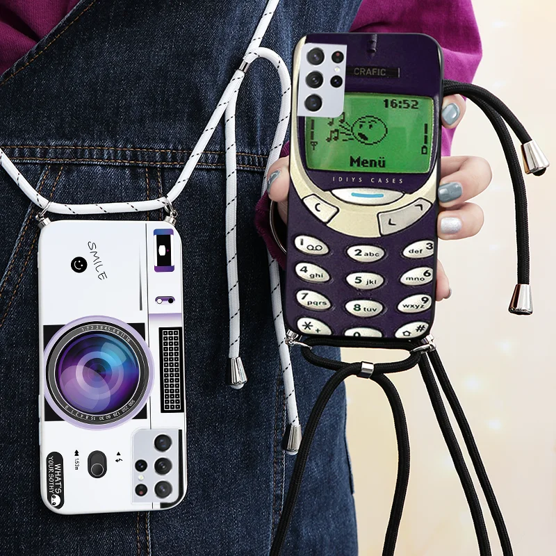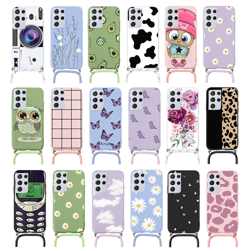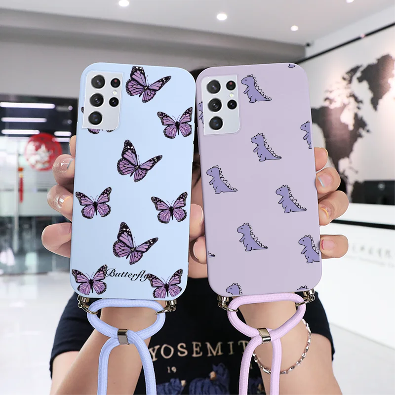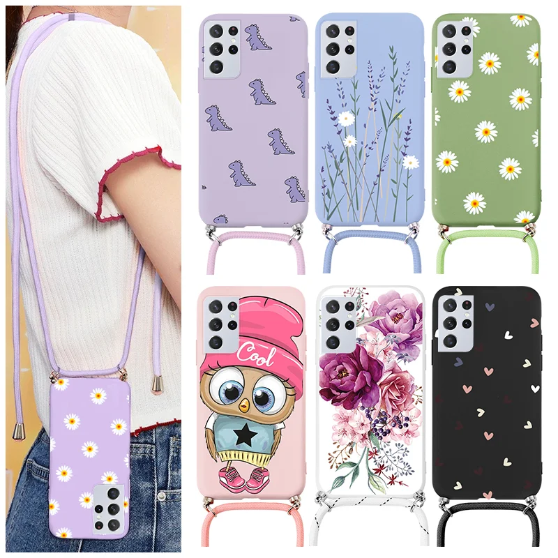 Чехол для Samsung Galaxy S21 Plus, Ультратонкий Мягкий чехол из ТПУ для Samsung S21 + S21Ultra, чехлы с цепочкой, ожерельем, ремешком и шнурком, чехол