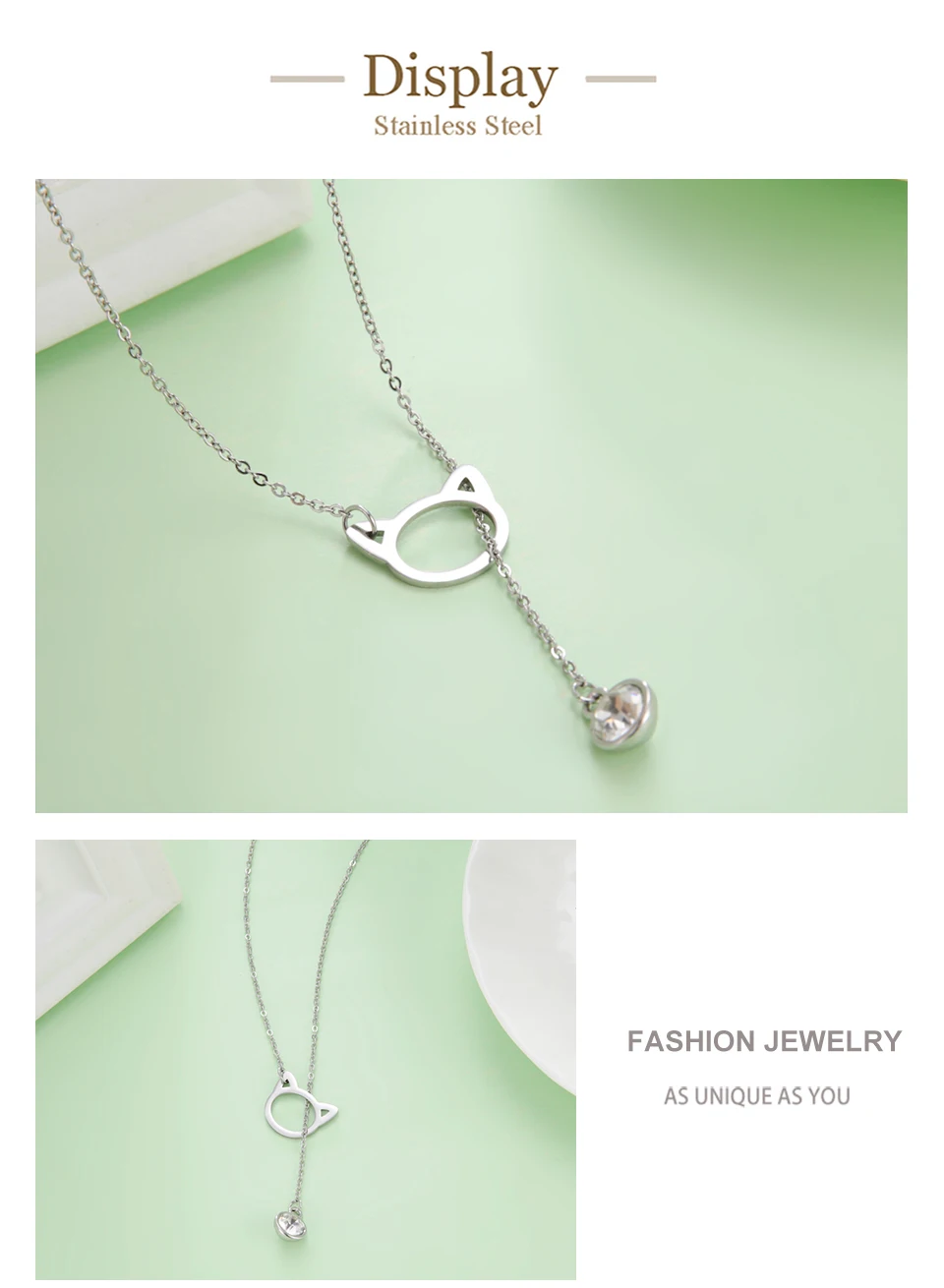 Модное ожерелье Unift с подвеской в виде кошки из нержавеющей стали с кристаллами для женщин, милый Повседневный чокер серебристого цвета, винтажное украшение