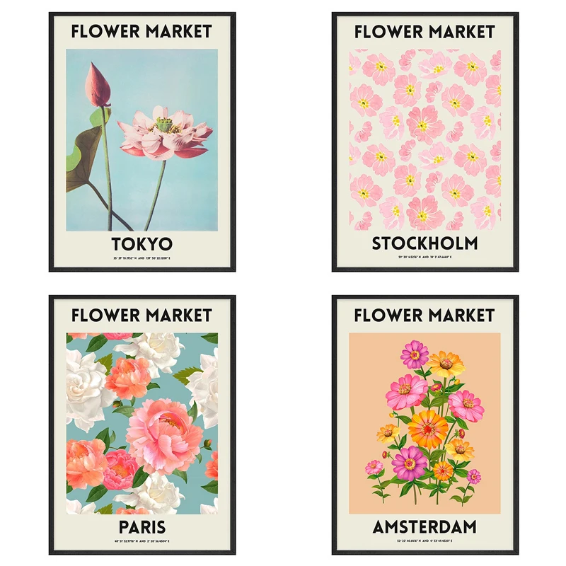 Картина на холсте с изображением Парижа, цветов, рынка Амстердам, Токио, фотография Стокгольма, фотообои для декора гостиной