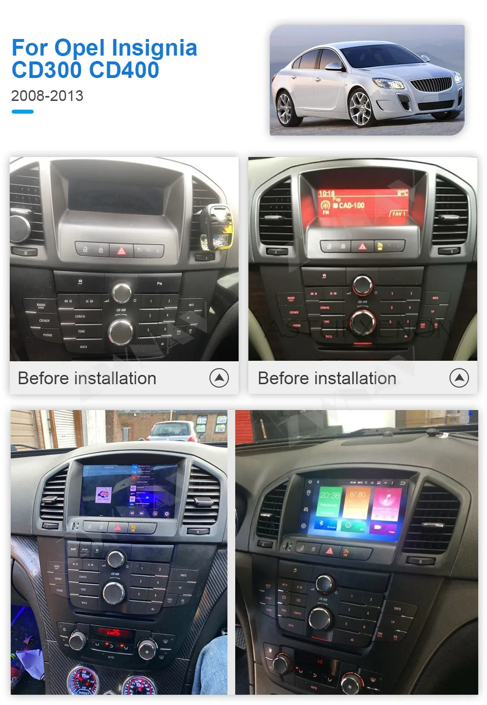 Подходит для OPEL Insignia 2008-2013 1. Поддержка управления рулевым колесом 2. Поддержка функции автоматической парковки 3. Функция подогрева сидений 4, усилитель поддержки 5. После установки будет отображаться информация о кондиционировании воздуха. Вы также можете управлять им на экране. И т. д.