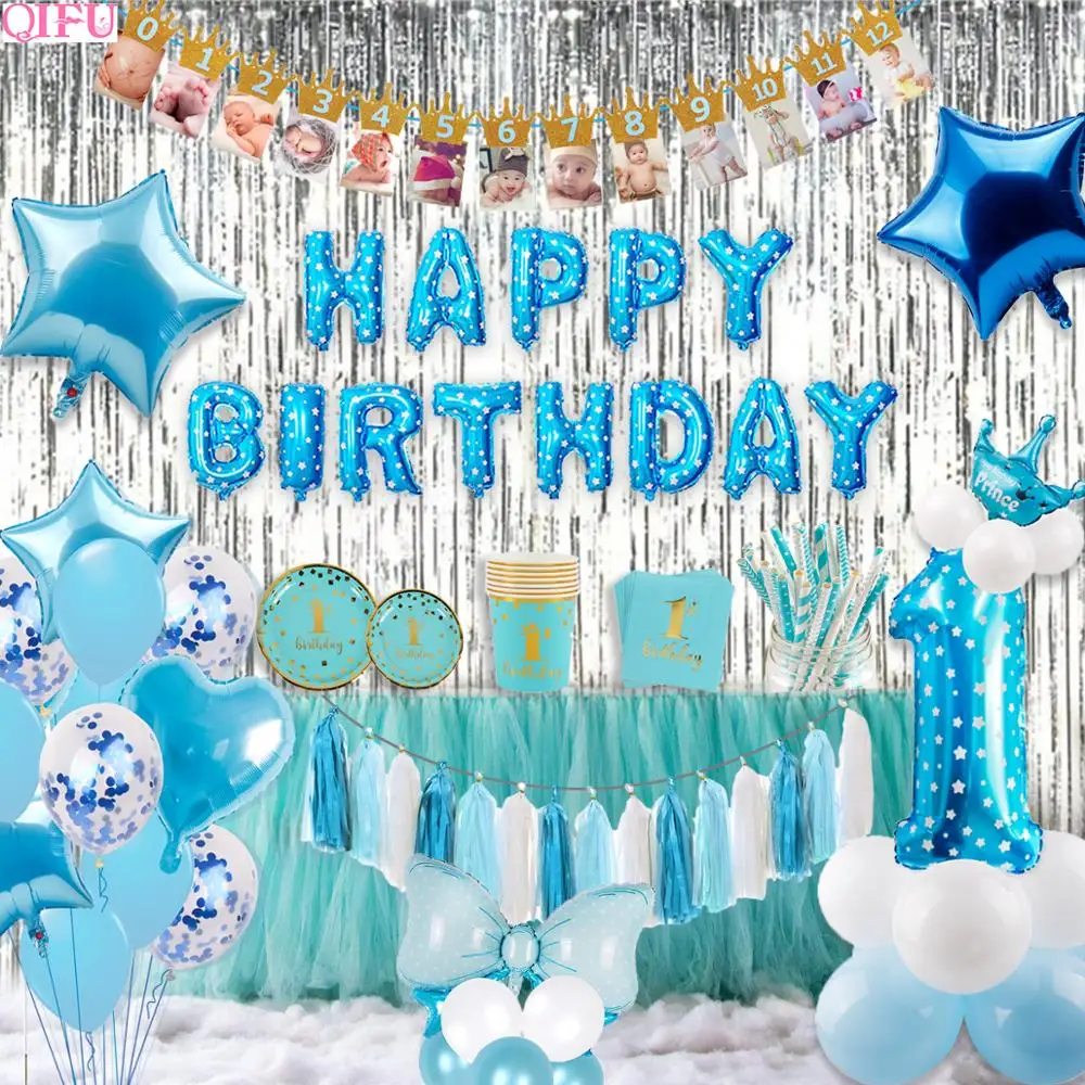 Синие воздушные шары для мальчиков на первый день рождения, вечерние баннеры для мальчиков на первый день рождения, Вечерние Декорации на день рождения для маленьких мальчиков