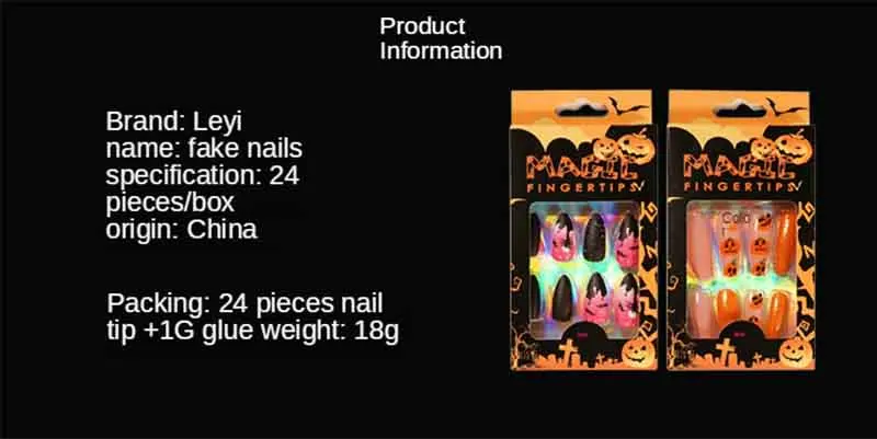 Накладные ногти на Хэллоуин гримаса напечатанный патч для ногтей тип клея съемный длинный абзац Модный маникюр накладные ногти патч для девочек