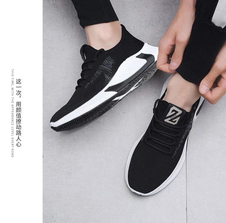 Кроссовки мужские сетчатые дышащие, удобные легкие, повседневная обувь для бега, мягкие, черные
