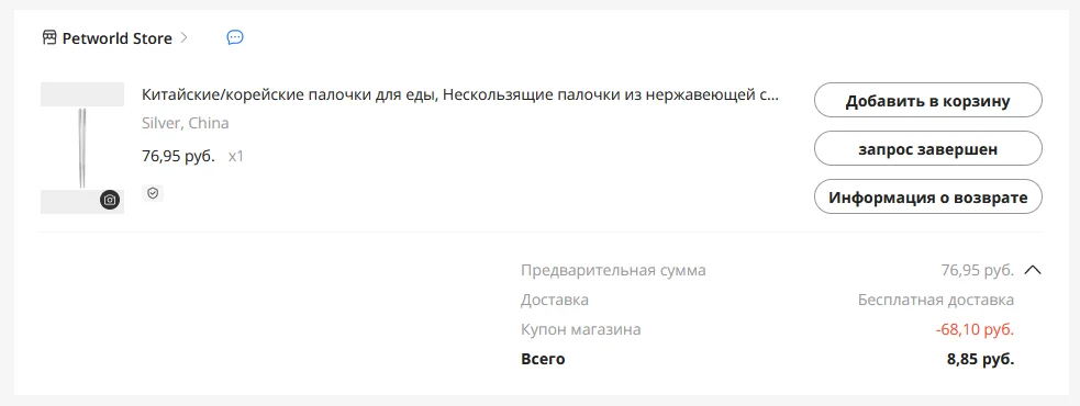 Страна: RU Color: Silver Ships From: China Доставка: Selection Super Economy 18.04.2023