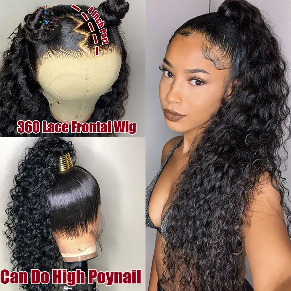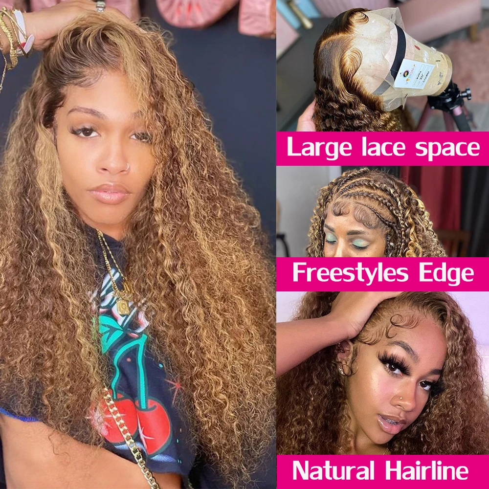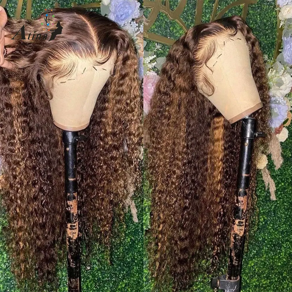 Парик из натуральных человеческих волос со сплошной кружевной передней частью 360, бразильские вьющиеся волосы с эффектом омбре, красивые светлые волосы с водной волной, HD кружевные передние парики для женщин