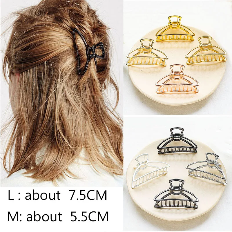 Заколка-краб для волос, металлическая, однотонная, большого размера
