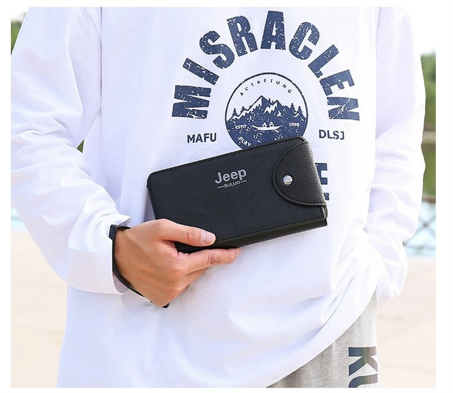 JEEP BULUO, Длинные кошельки, брендовый кожаный кошелек, сумка, новый мужской смарт-кошелек, кредитный банк, держатель для карт, модный кошелек, Деловой, Повседневный