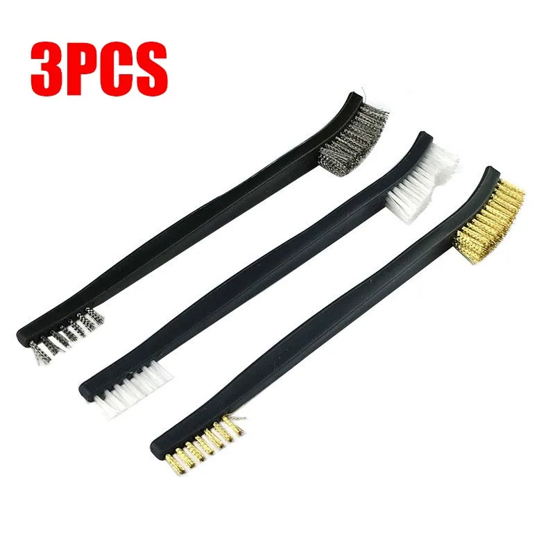 1x латунная проволочная щетка + 1x нейлоновая проволочная щетка + 1x проволочная щетка из нержавеющей стали