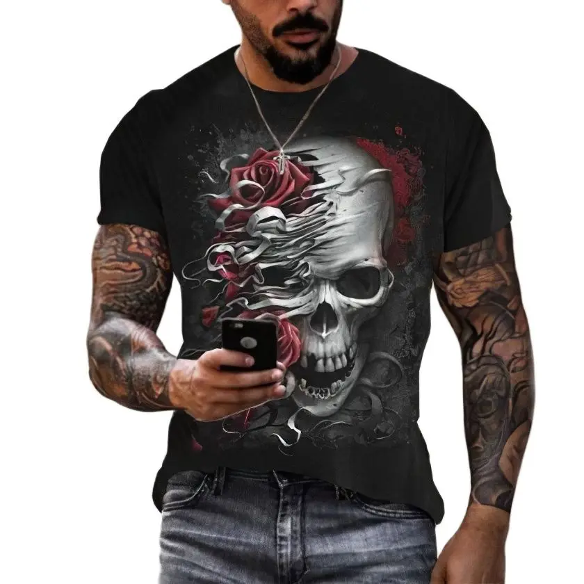 Футболка мужская с 3d-рисунком черепа, ужасный топ с круглым вырезом, модная уличная одежда в стиле хип-хоп, большие размеры, на лето