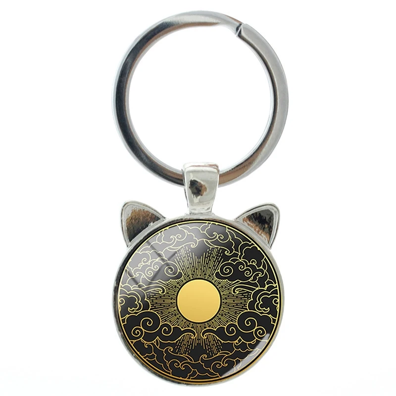 Новинка, посеребренный брелок для ключей с классическим ландшафтом, облаками, ручным покрытием, кошачьими ушками, мужские и женские сумки, брелок, аксессуары, ювелирные изделия