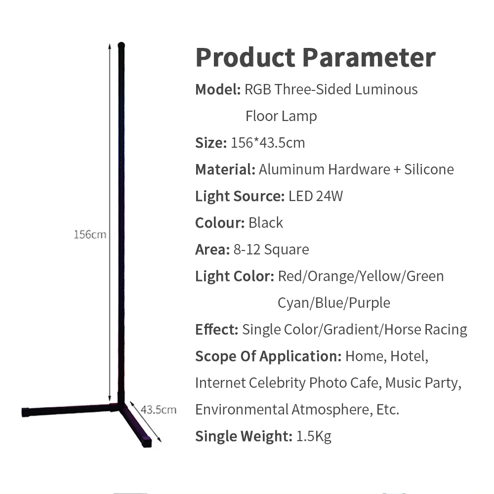 Светодиодная напольная лампа RGB с изменением цвета, угловая лампа ...