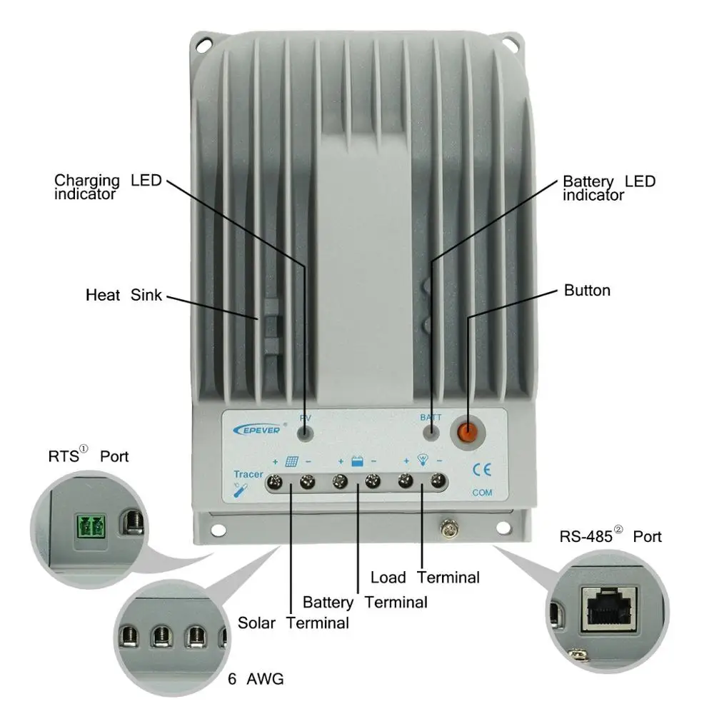 Процесс зарядки аккумулятора был оптимизирован для длительного срока службы батареи и улучшенной производительности системы. Комплексная Самостоятельная Диагностика и функции электронной защиты могут предотвратить повреждение от ошибок установки или ошибок системы. Кроме того, контроллер серии Tracer-BN имеет интерфейс RJ45, который позволяет общаться с другими аксессуарами.