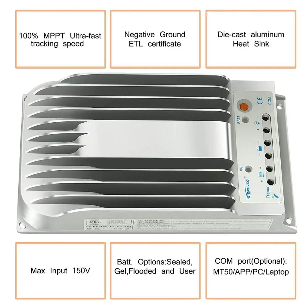 Контроллер заряда солнечной батареи EPever MPPT 30 А, отрицательный заземляющий 12 В 24 В с Wi-Fi, BLE, удаленный измеритель, фотоэлектрическая связь 3215BN