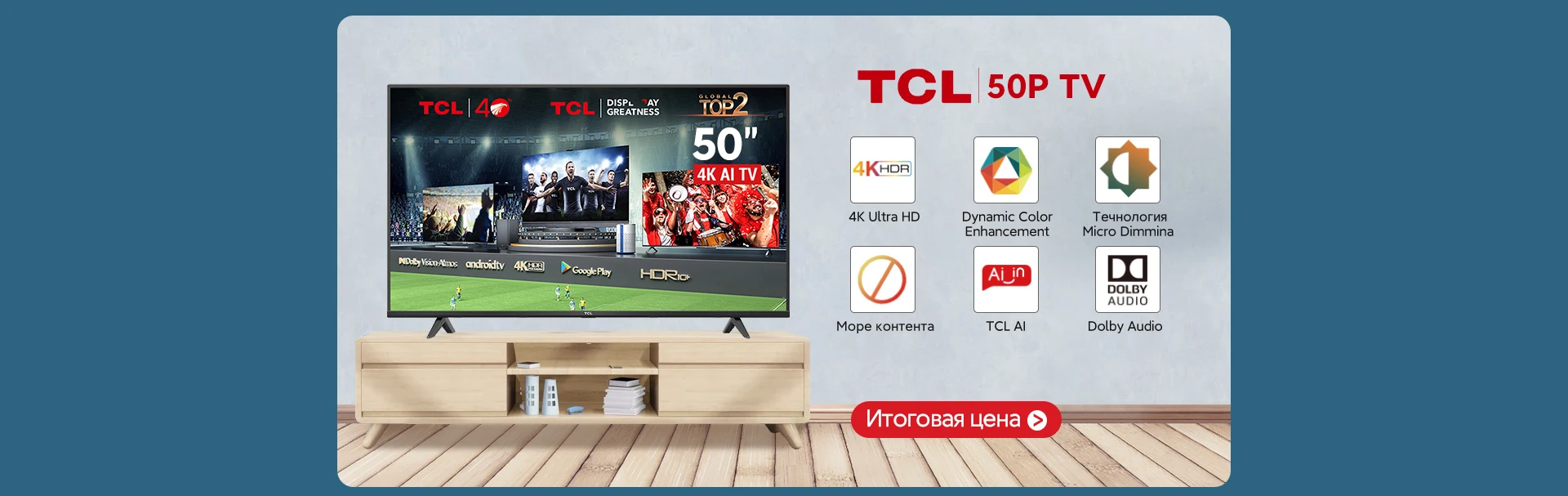 TCL телевизор 4k 50inch Smart TV AndroidТелевизор Смарт ТВ Tелевизо...
