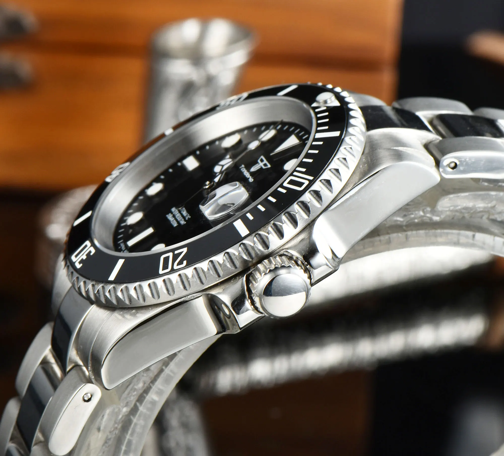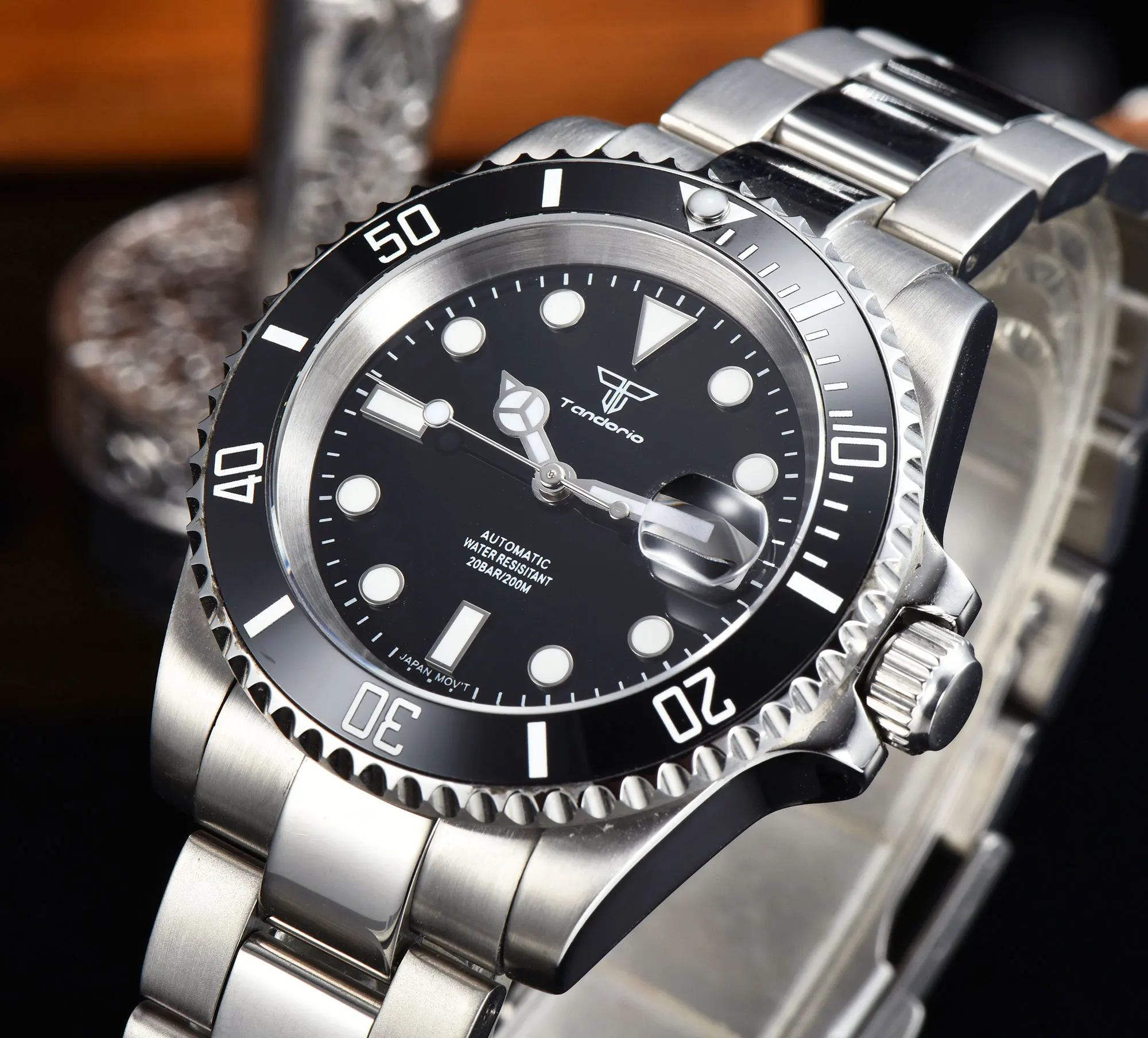 Часы Tandorio Мужские автоматические, 40 мм, Япония, NH35A Move, Мужские t, сапфировое стекло, светящийся керамический, Безель, высокое качество