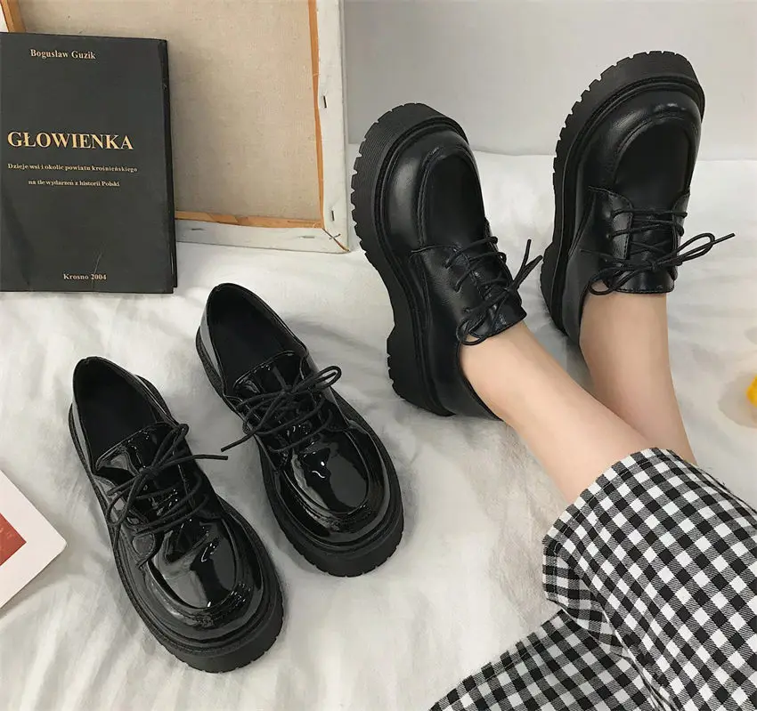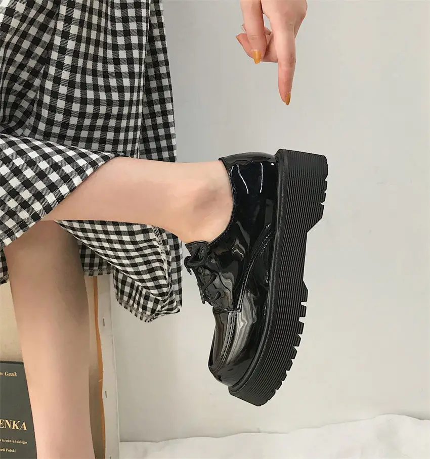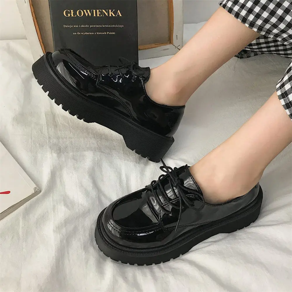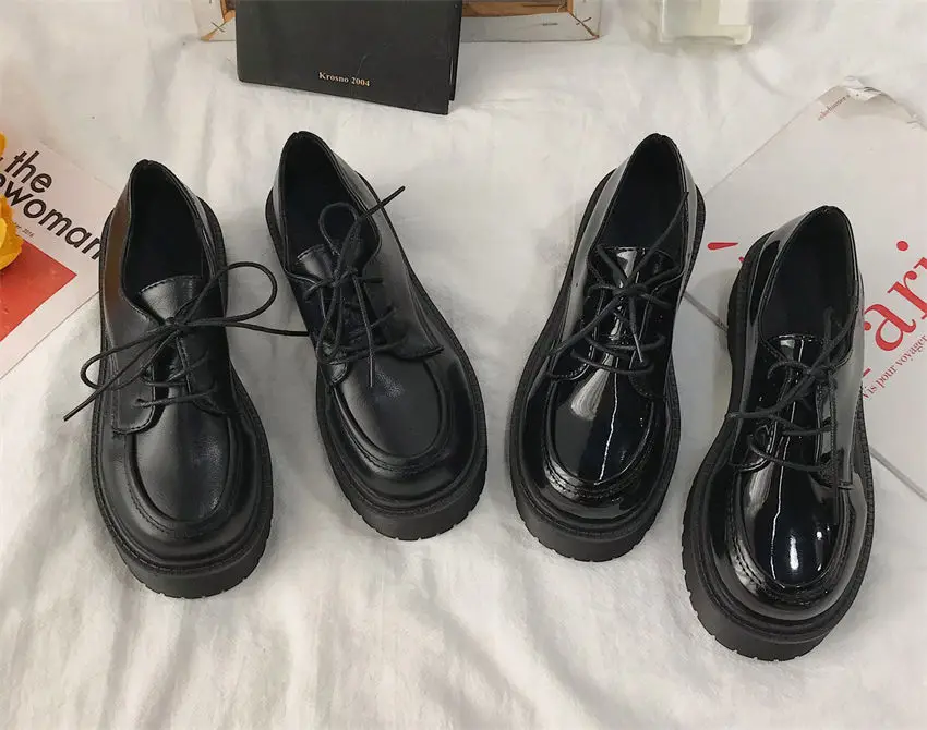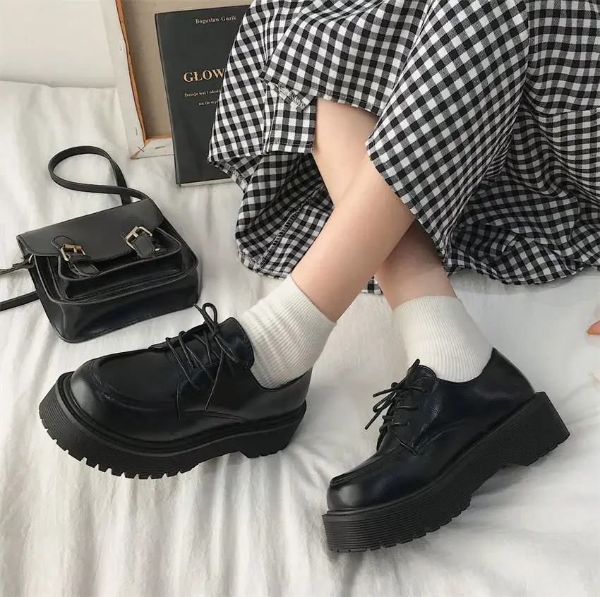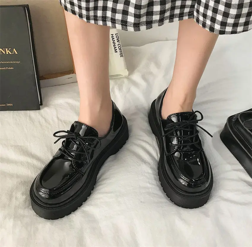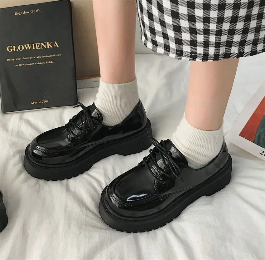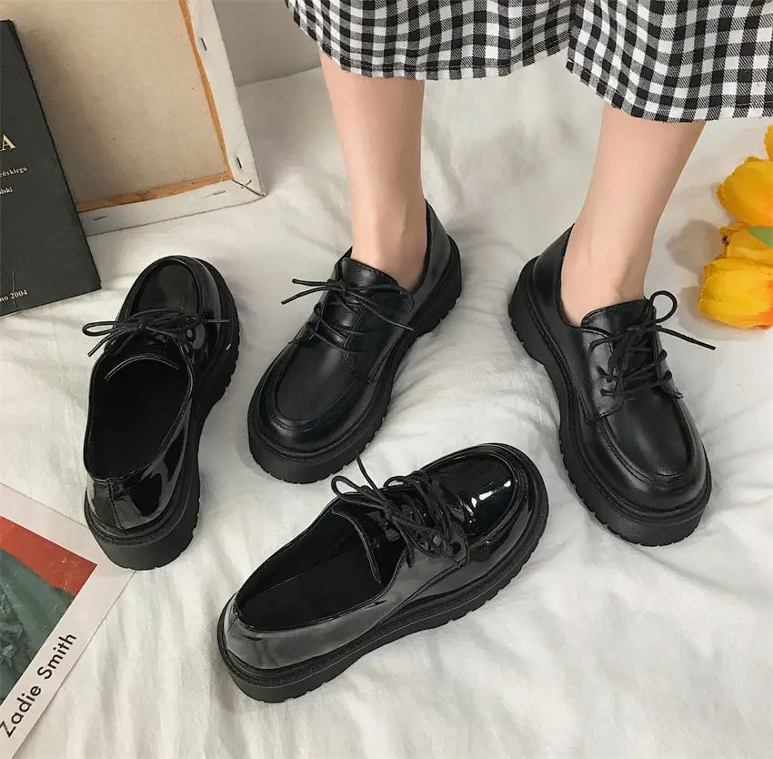 Школьная обувь в японском стиле, черные, коричневые туфли на платфо...