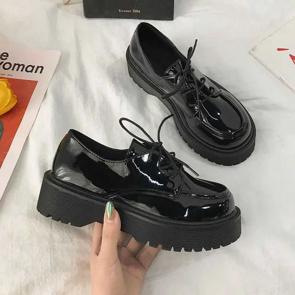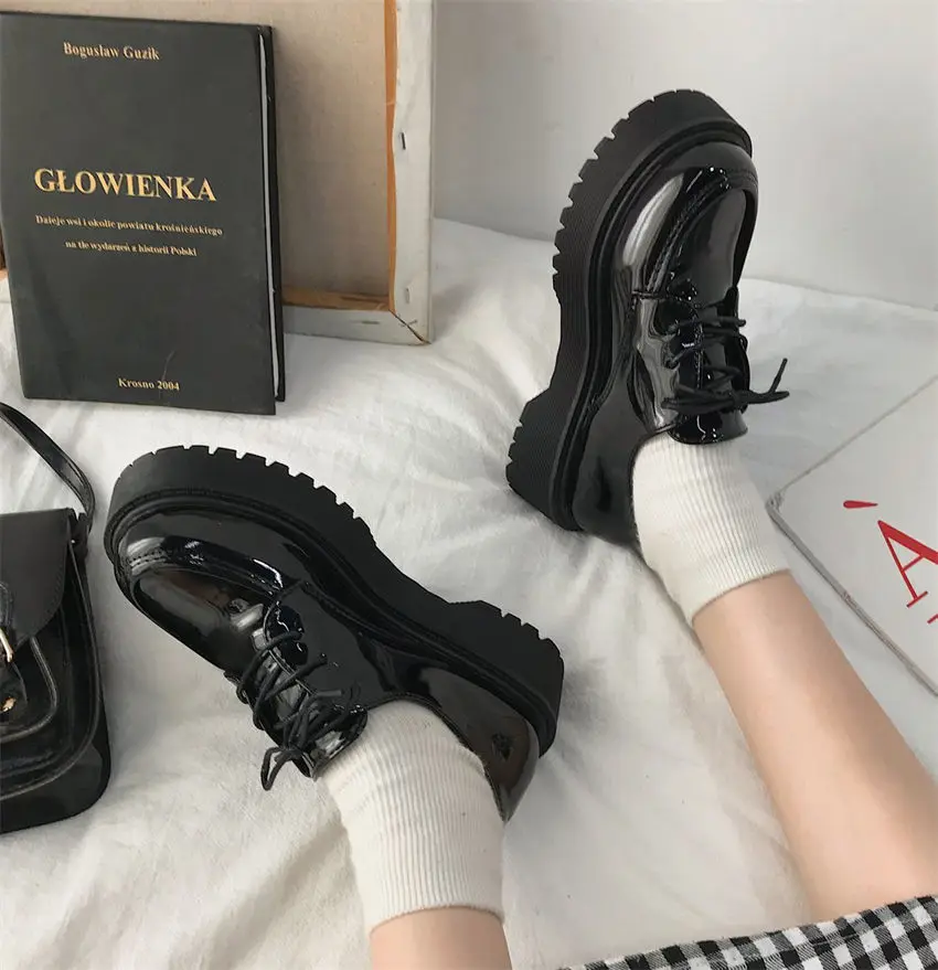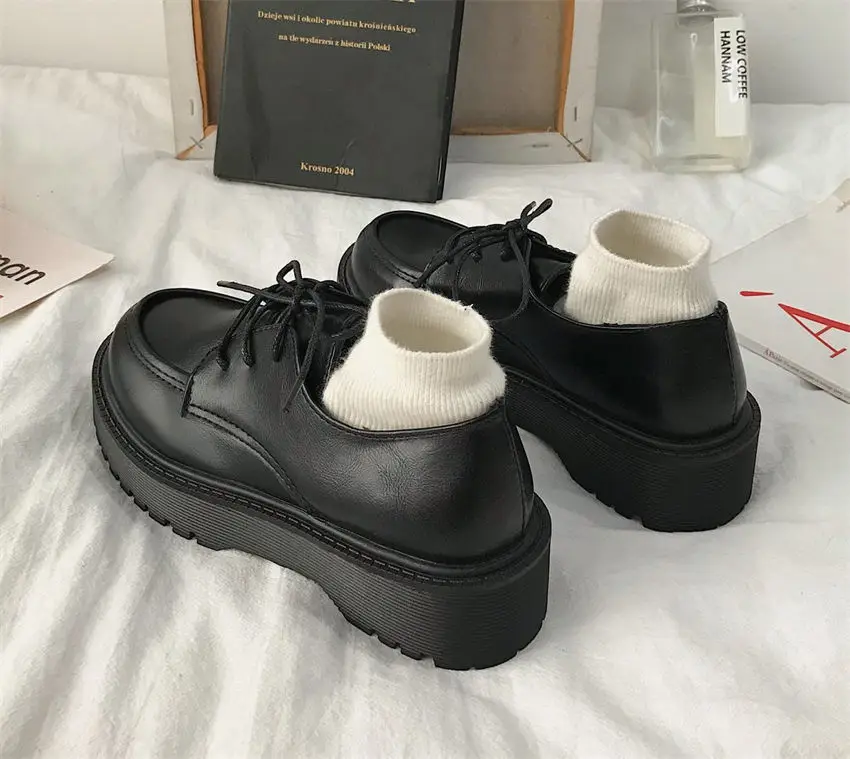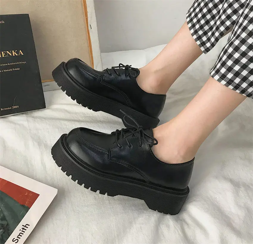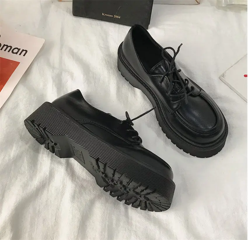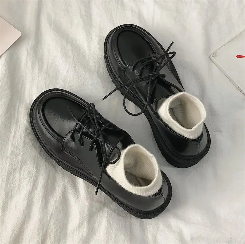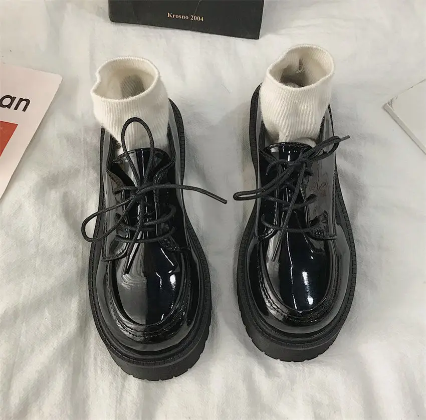 Женские ботинки на толстой подошве, Осенние британские студенческие...
