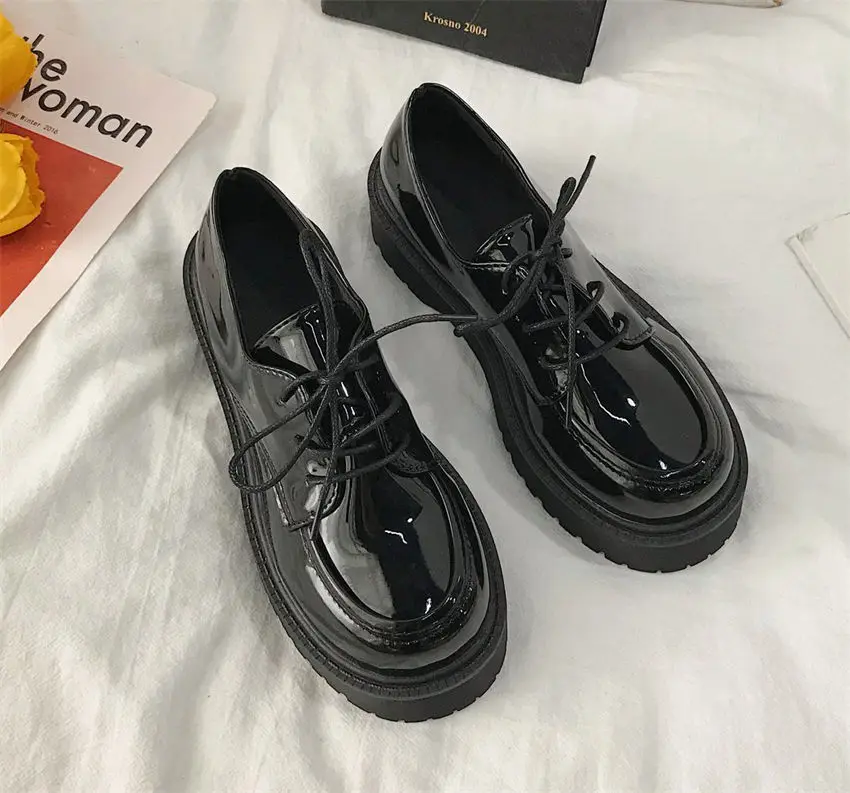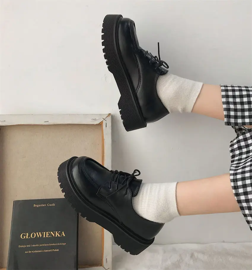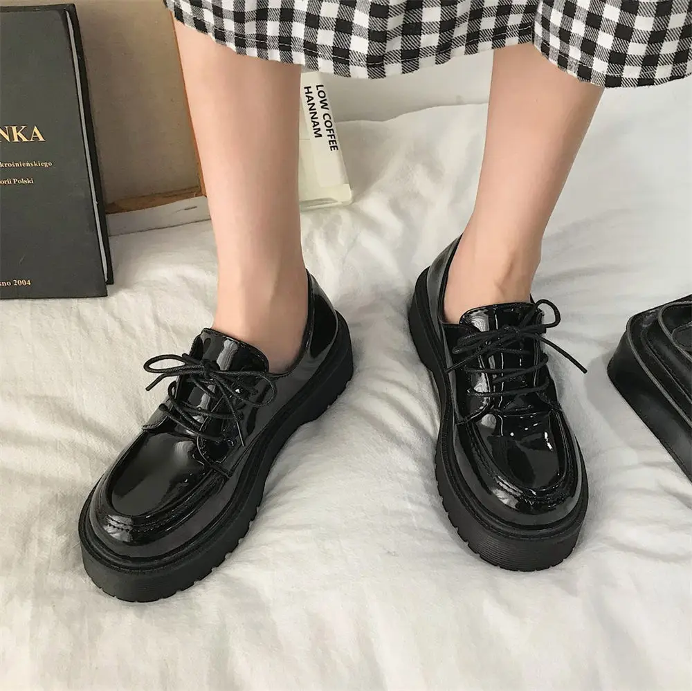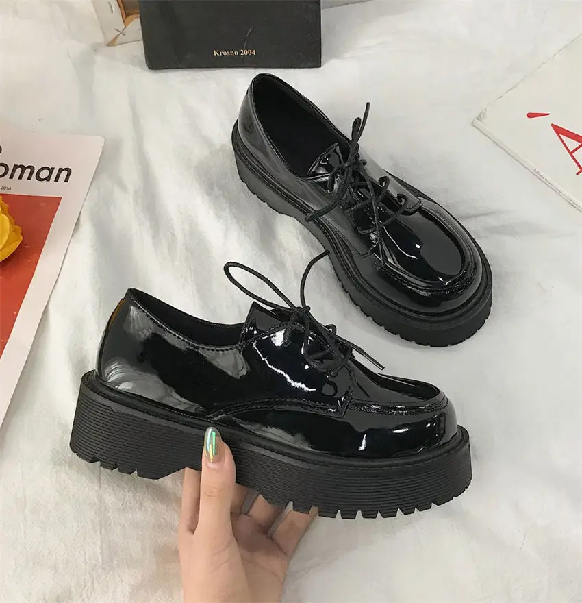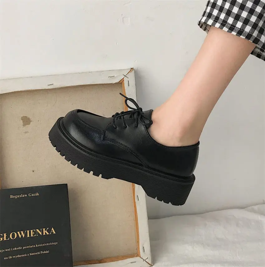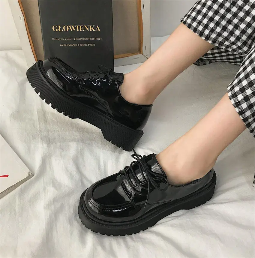 Женские ботинки на толстой подошве, Осенние британские студенческие...
