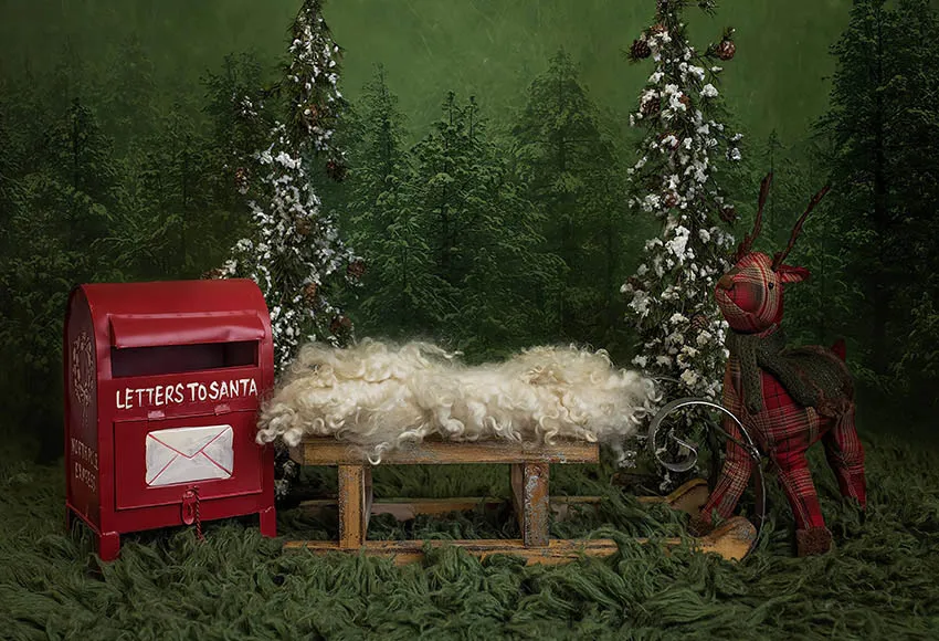 Рождественский фон Avezano для портретной фотосъемки новорожденных, Зеленый Лес, дерево, почтовый ящик, игрушка, Декор, реквизит для фотостудии