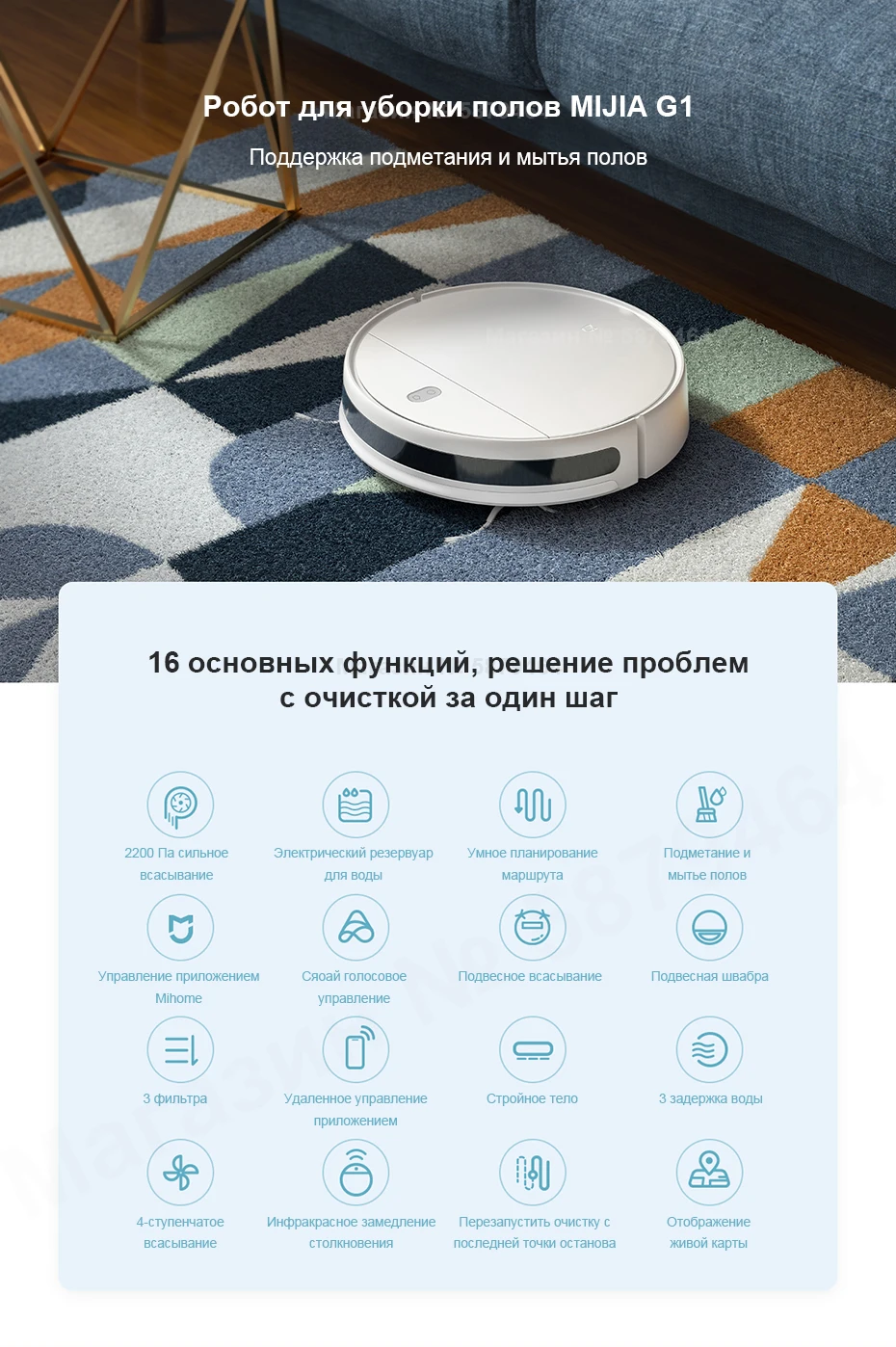 Робот-пылесос Xiaomi Mijia G1, влажная и влажная уборка, 2200 Па