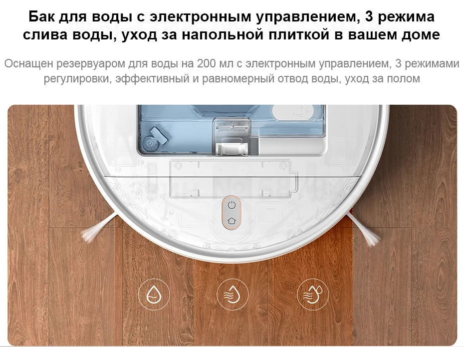 * Резервуар для воды с электронным управлением, 3 режима выхода воды, уход за полом.