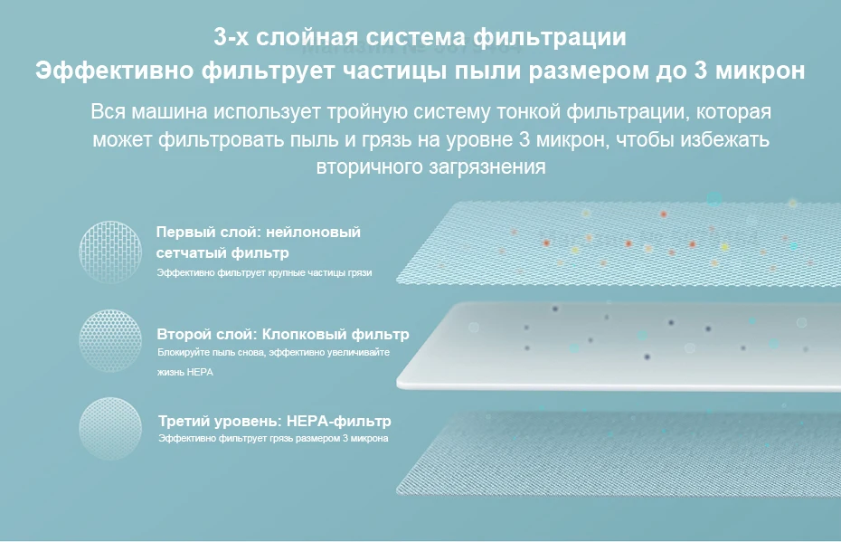 3 система фильтровЭффективно фильтрует пыль 3 микрон