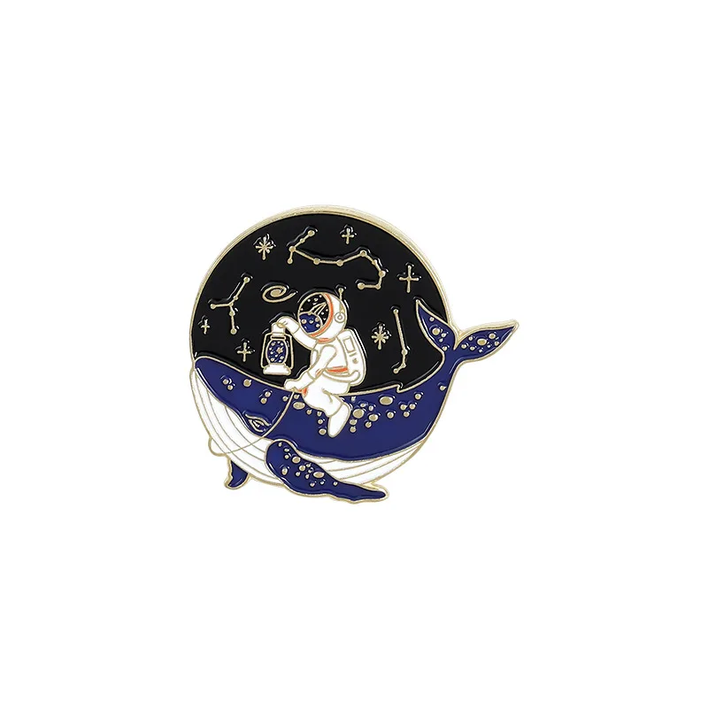 Эмалированная булавка в виде астронавта и Кита, значок, ювелирное изделие, подарок для друзей, приключений, океан, Дрифтинг, желания, брелок для сумки