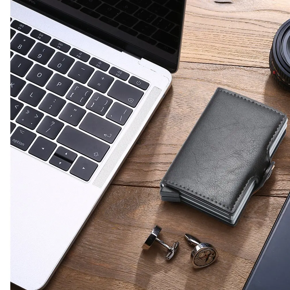 Умный кошелек для мужчин и женщин, кредитница, кредитница, модный бумажник из алюминиевого сплава, деловой Повседневный брендовый кожаный мини-кошелек