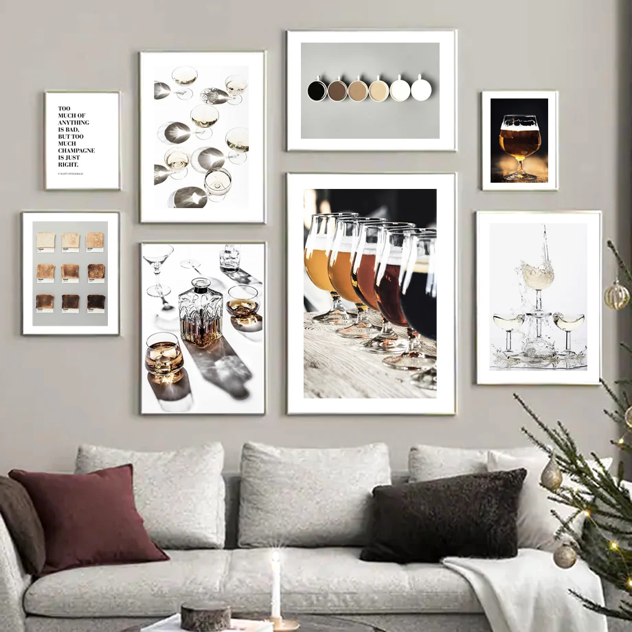 Постер в скандинавском стиле с изображением золотых очков пива, кофе, шампанского, настенная Картина на холсте, декоративные картины для гостиной, кухни, комнаты