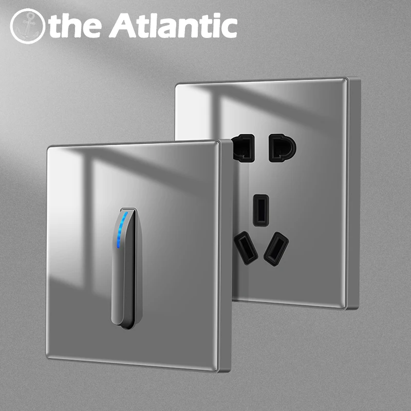 Высветильник ель света со светодиодным индикасветодиодный, настенная розетка европейского и французского стандарта, фортепиано, кнопка для сброса света, Переключатели освещения для телевизора RJ45, серый, серебристый