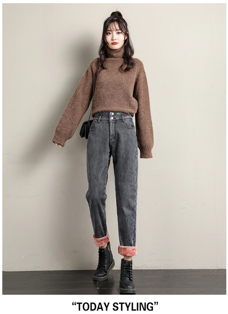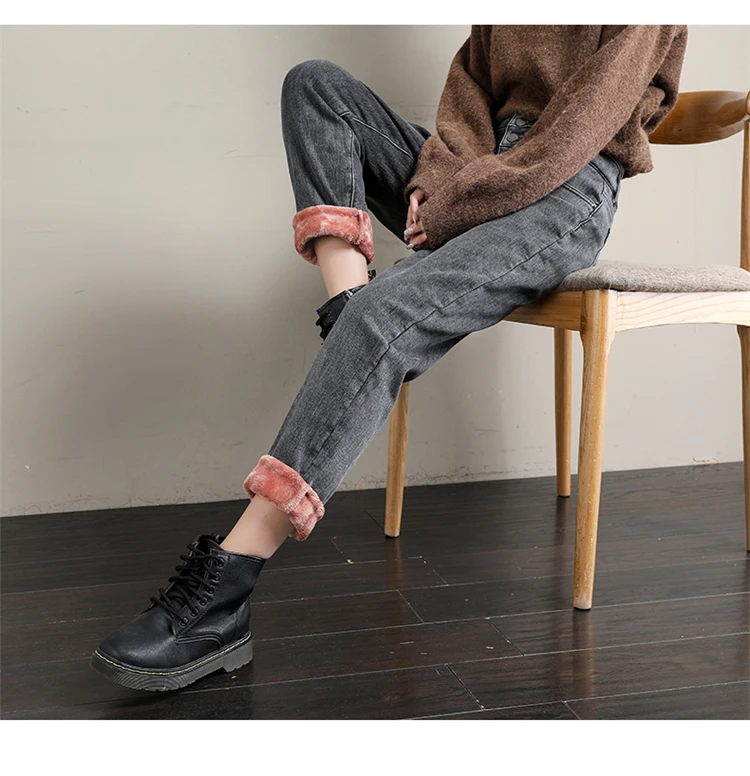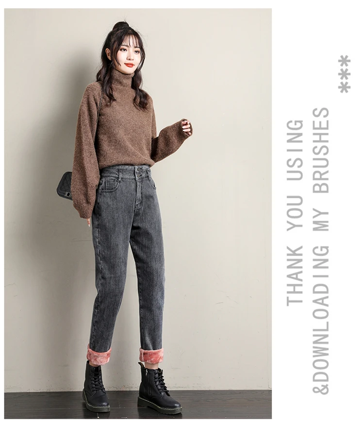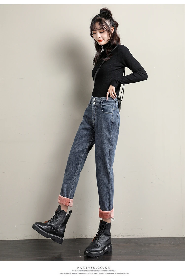 Новые зимние женские шерстяные джинсы с высокой талией плюс бархатн...