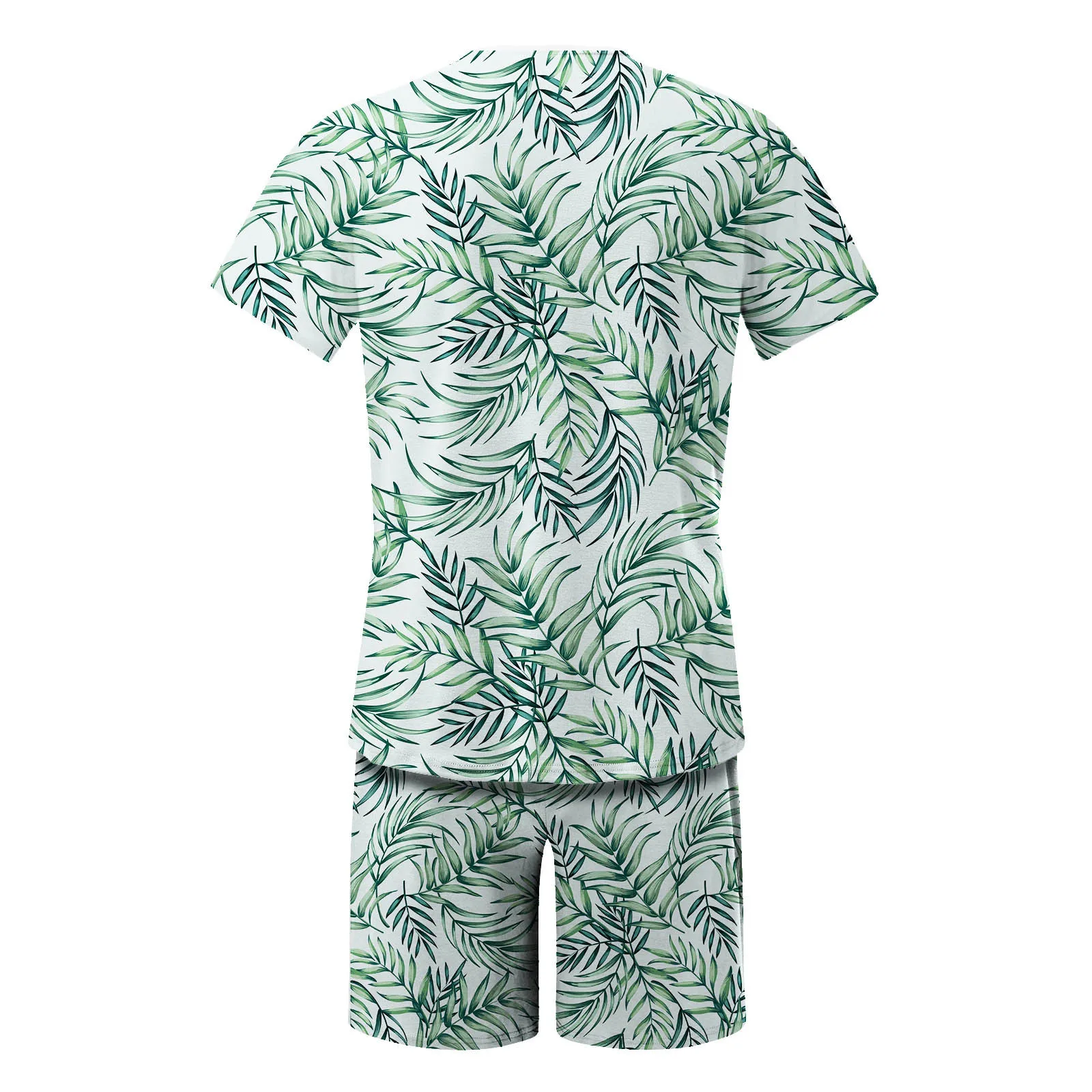 Костюм спортивный мужской Пляжный из 2 предметов, рубашка с коротким рукавом и шорты с принтом зеленых листьев, одежда для мужчин