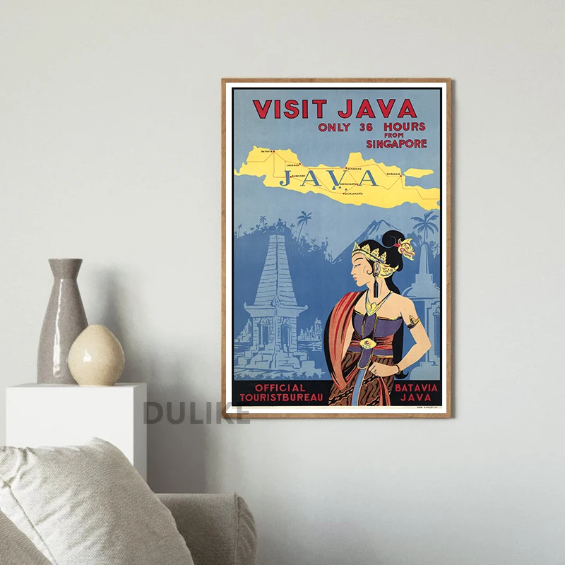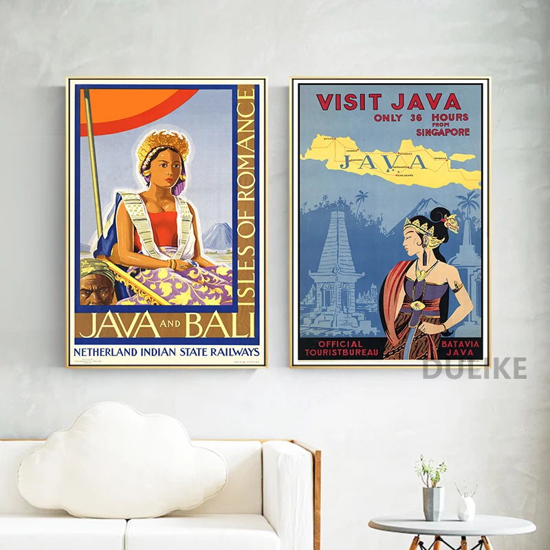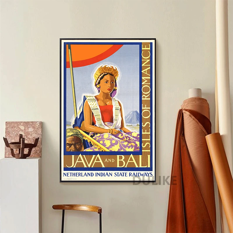 Винтажные дорожные постеры и принты Бали, Java, индонезийские острова романтики, пейзаж, ретро настенная живопись на холсте, декор для домашней комнаты