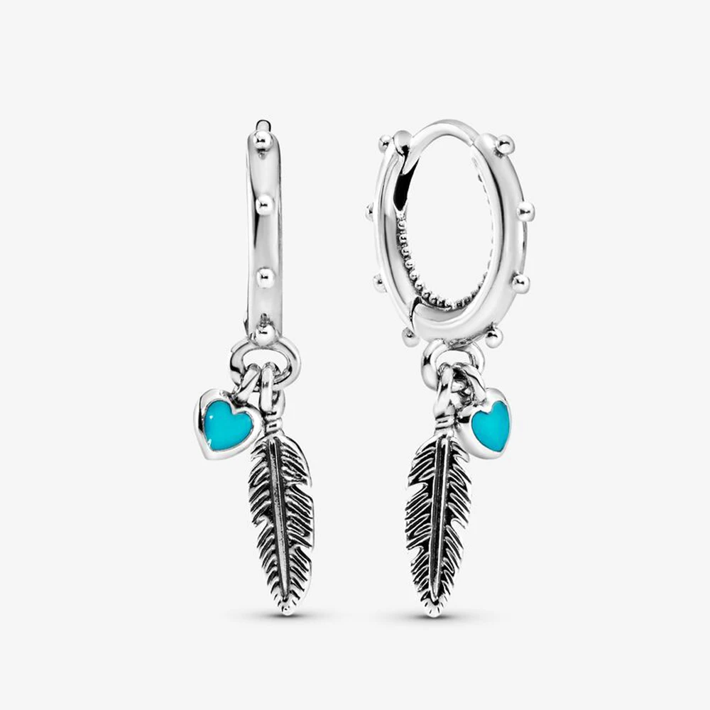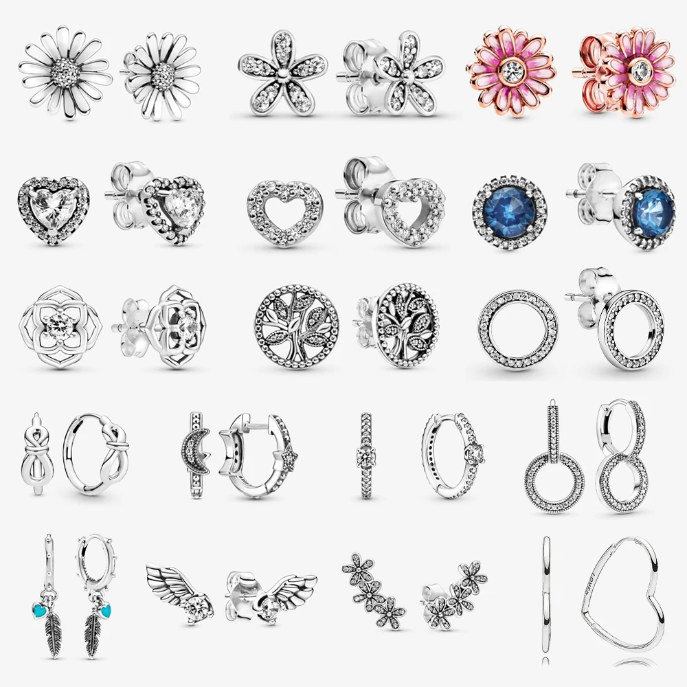 Серьги S925 серебряного цвета, цветок, сердце, перо, подходят для оригинальных модных сережек сделай сам для женщин, ювелирные изделия, серьги-гвоздики
