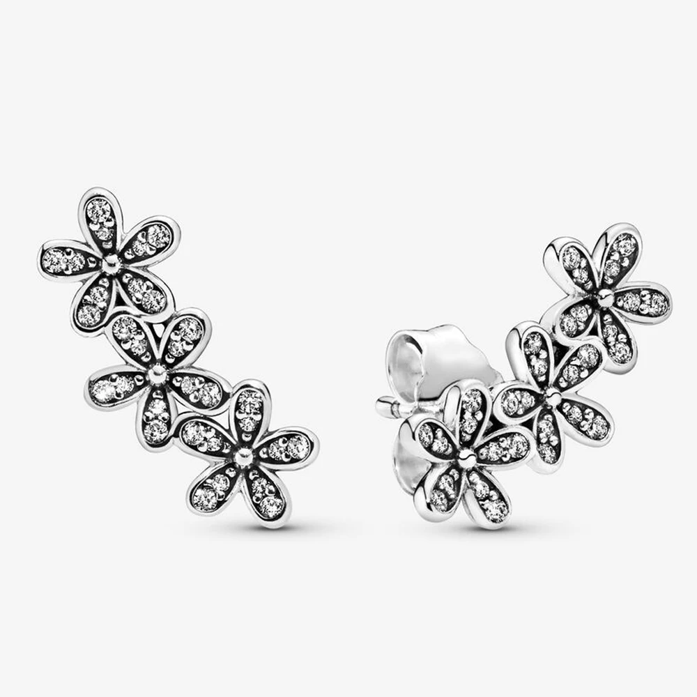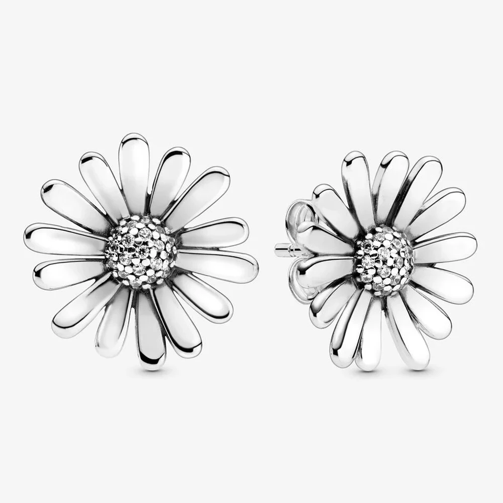 Женские серьги-гвоздики из серебра 100 пробы, с сияющими маргаритками