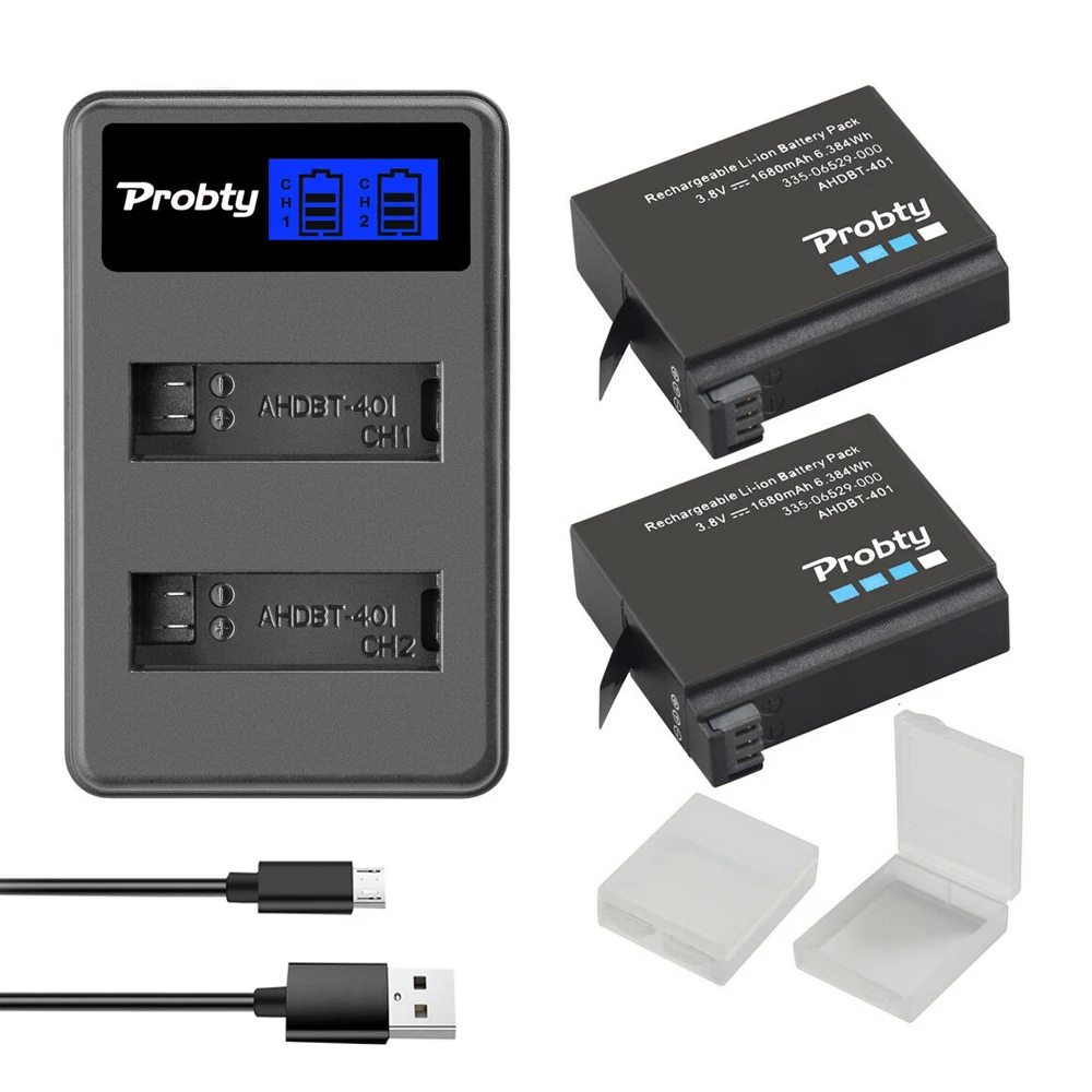 Аккумулятор 1680 мА ч AHDBT-401, 2 USB-порта, для камеры Gopro Hero 4, AHDBT401, AHDBT 401