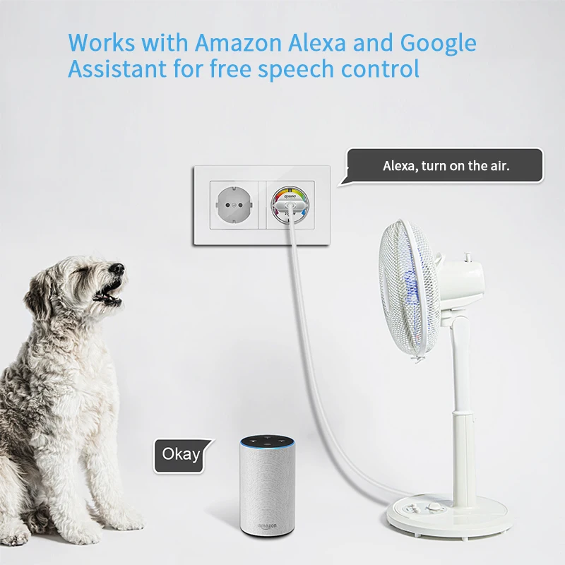 Эта умная вилка позволяет Голосовое управление с помощью Alexa/Google. Простая и быстрая работа путем сканирования qr-кода для загрузки приложения (app Store /Google play Store)