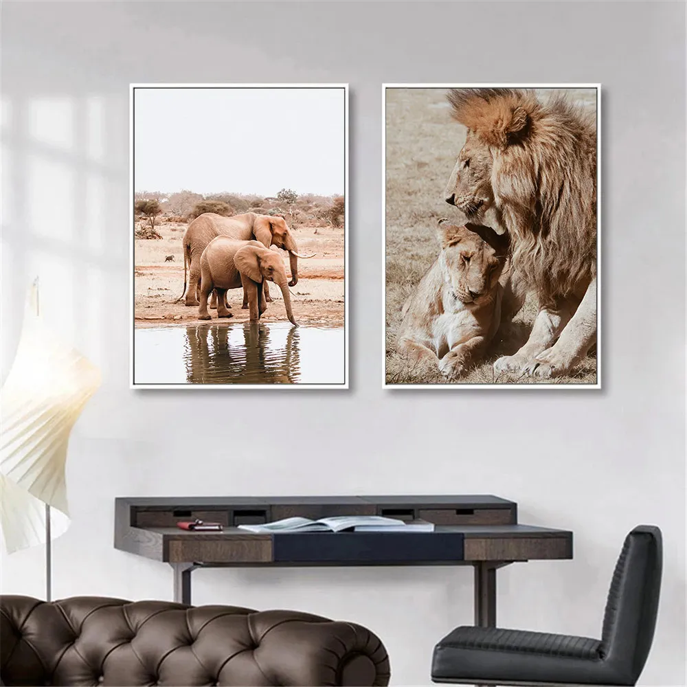 Wild Animal PosterLion Elephant Print