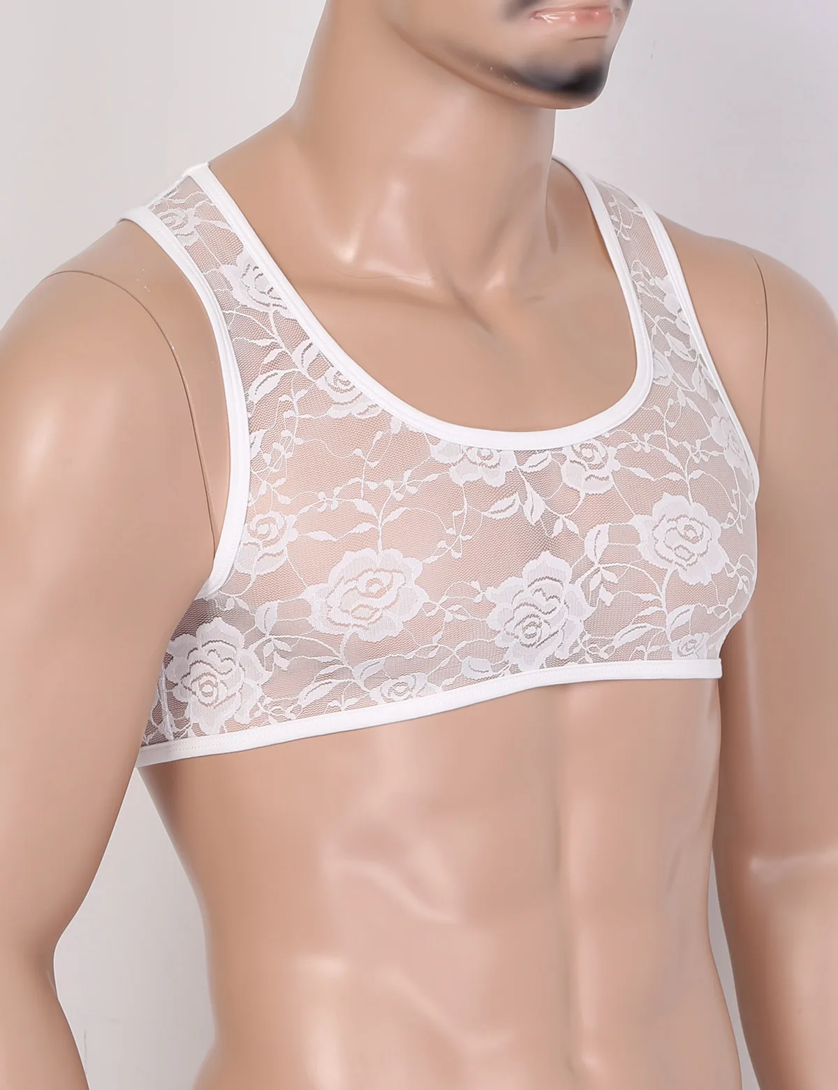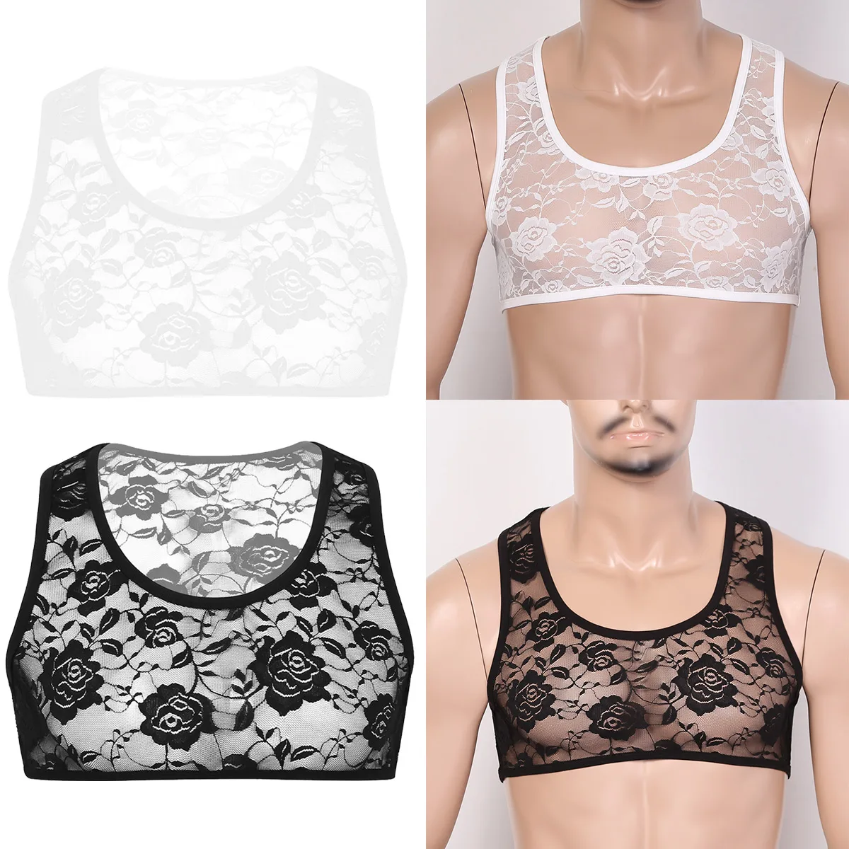 Мужской Эластичный короткий жилет с цветочным кружевом, укороченный топ, застежка-молния.