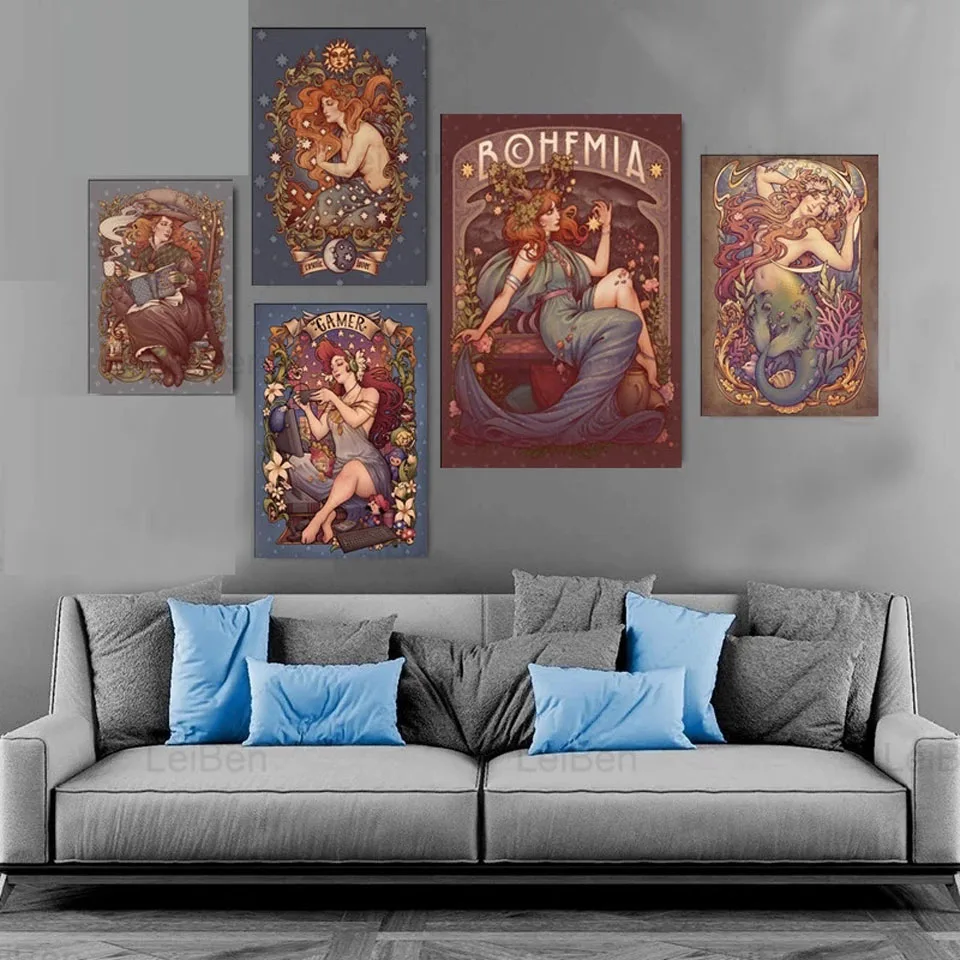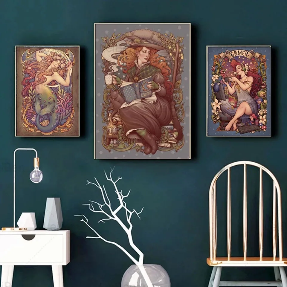 Мультфильм Русалка Ретро 5d diy Алмазная картина скандинавские абстрактные девушки настенная вышивка Модульная картина домашний Декор Гостиная