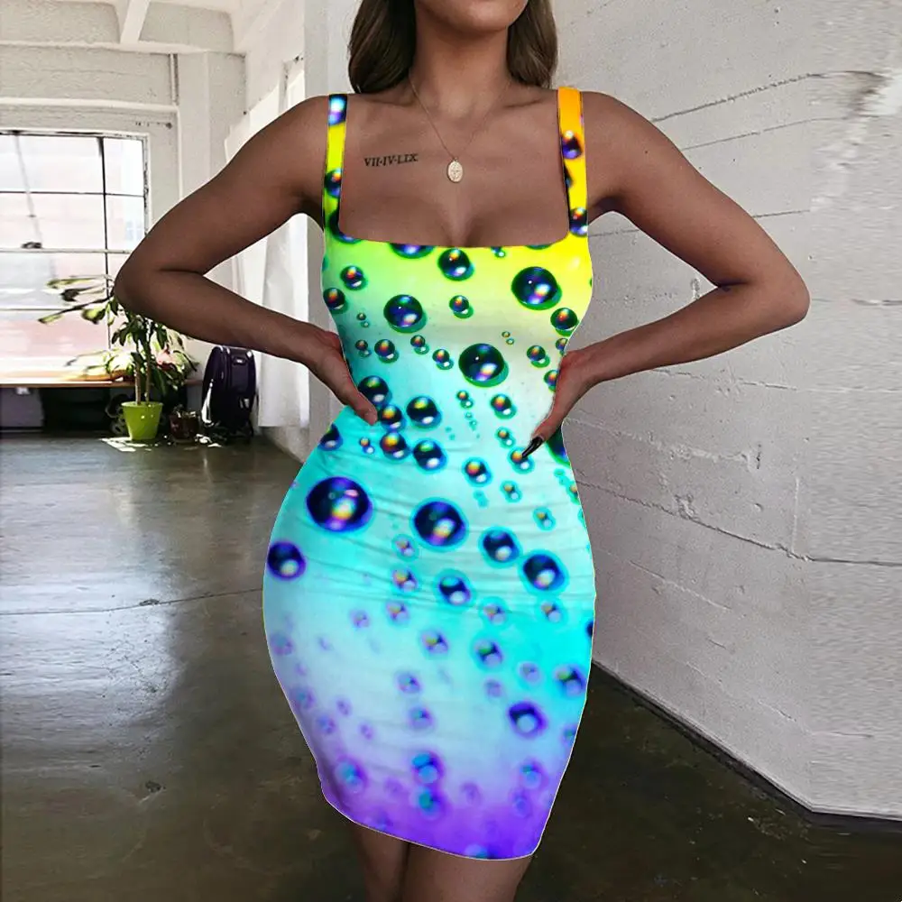 Платье женское неоновое с абстрактным 3D-принтом, на бретелях