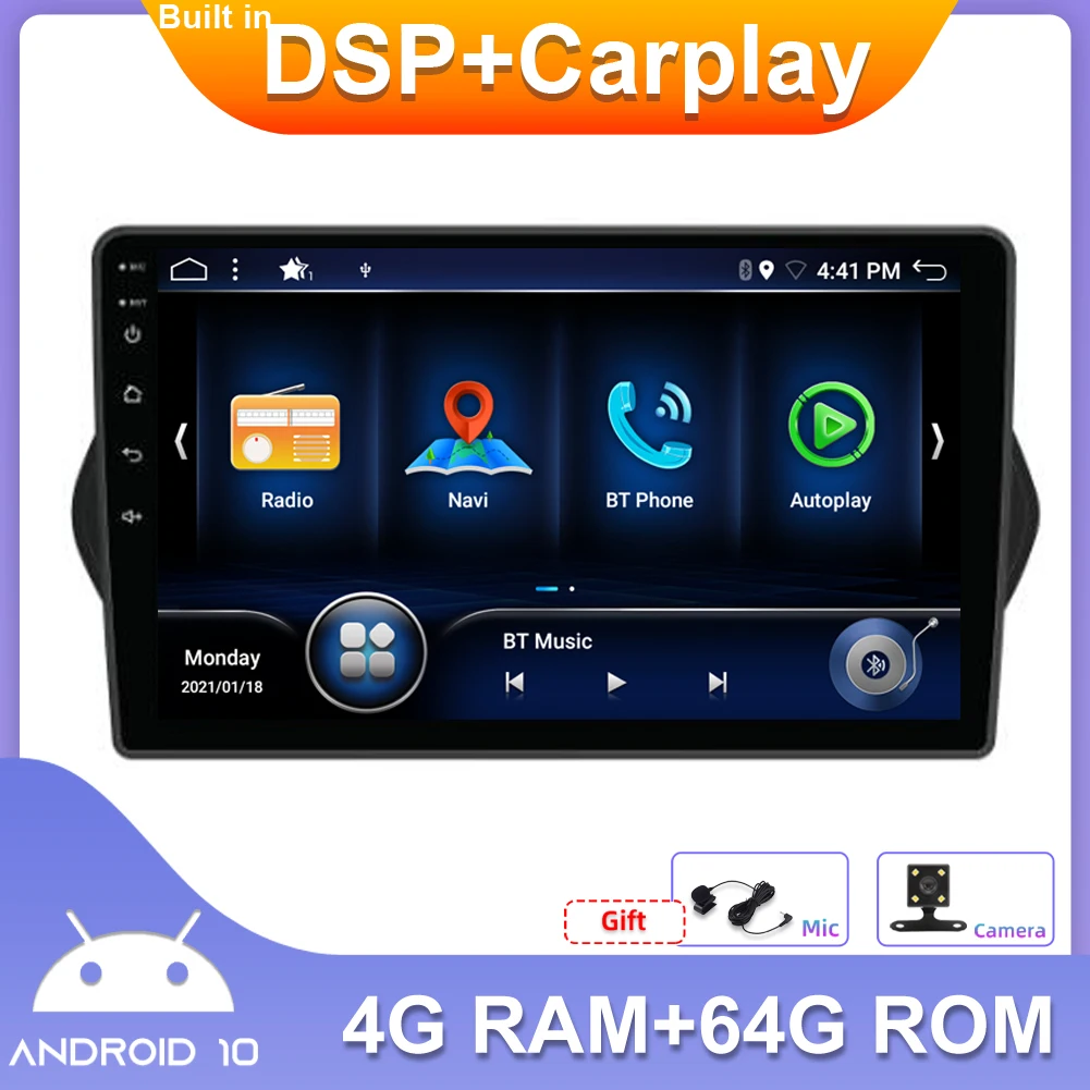 Автомагнитола для Fiat EGEA TIPO 2015-10,0, 4 Гб + 64 ГБ, Android 2018, мультимедийный видеоплеер, DSP, Carplay, GPS-навигация, 2 din, dvd