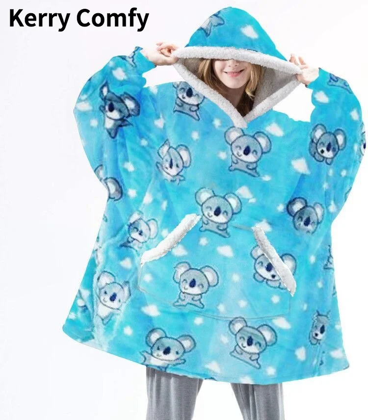 Удобное фланелевое одеяло с мультяшным рисунком и рукавами, Зимние толстовки, свитшот для женщин и мужчин, флисовое огромное одеяло для телевизора, пушистое одеяло оверсайз