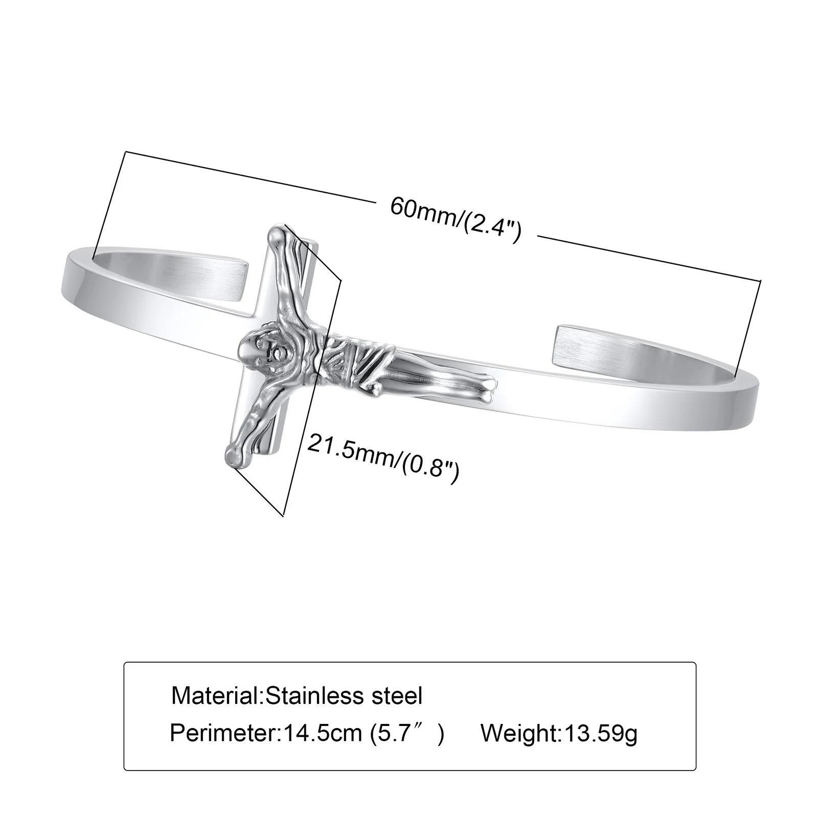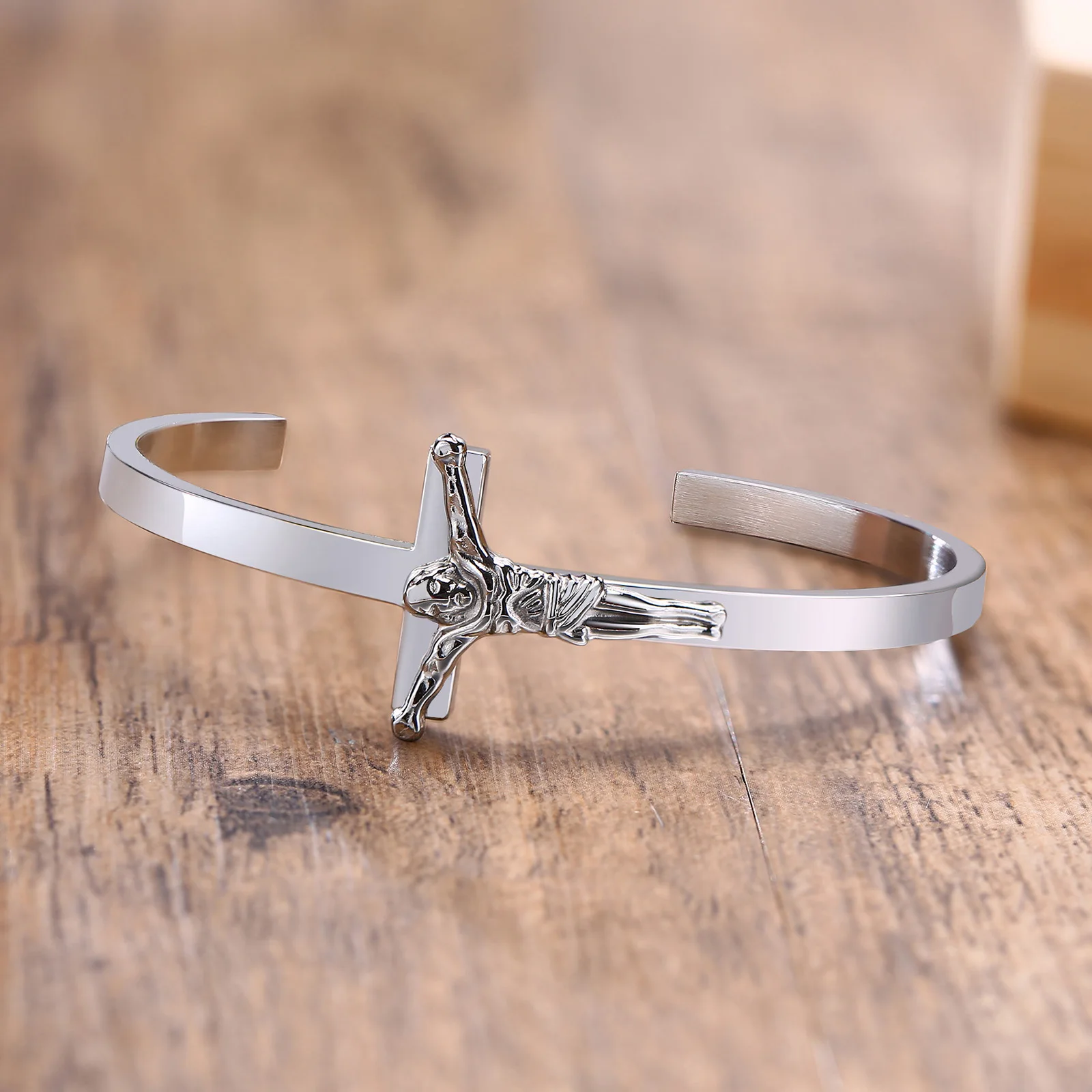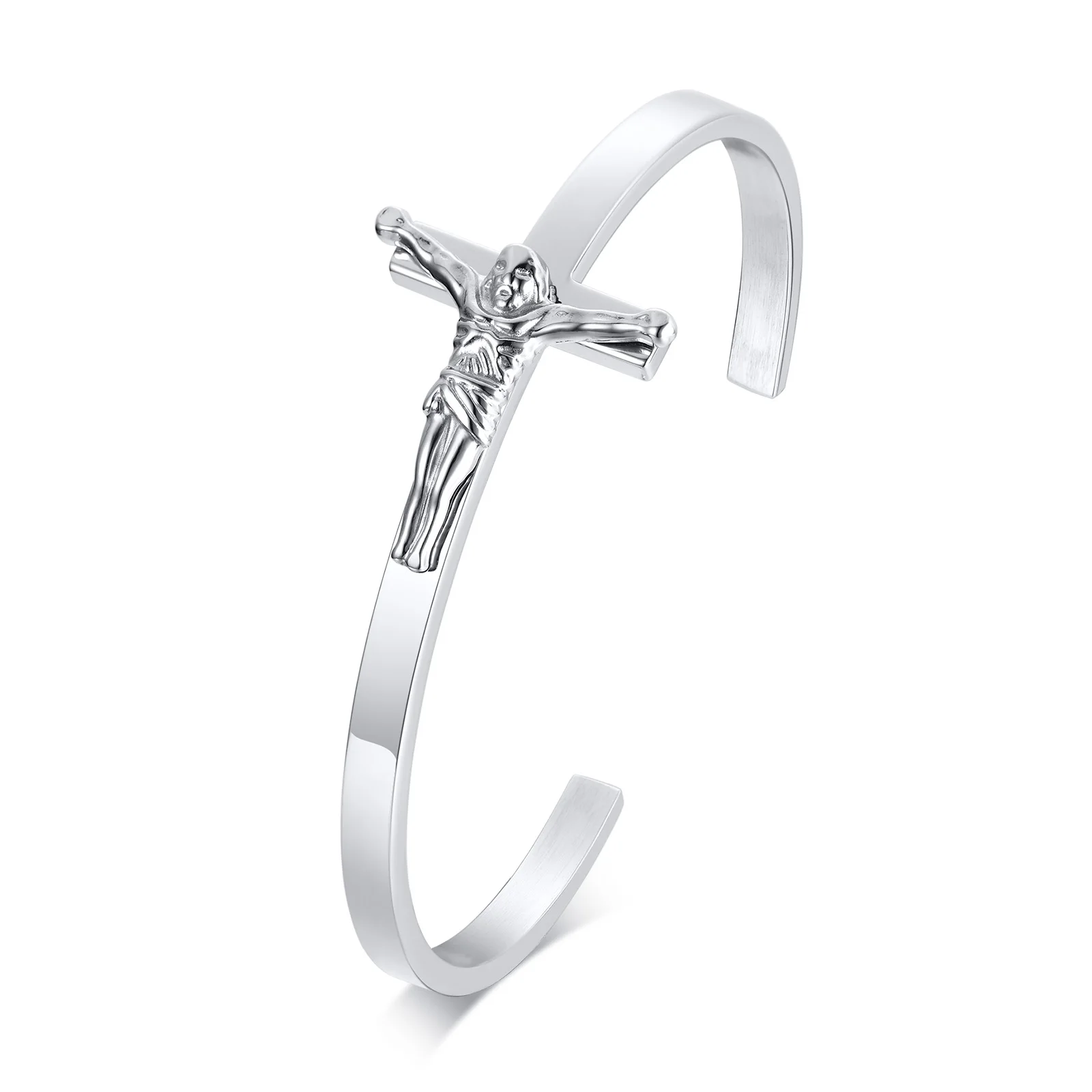 Сбоку Иисус крест манжеты браслет, нержавеющая сталь манжеты браслет, христианский святая религиозная мужской ювелирные изделия