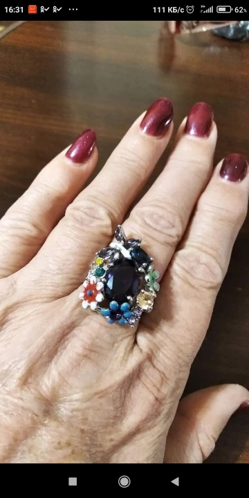Женское геометрическое кольцо с розовым кристаллом и зеленым циркон...