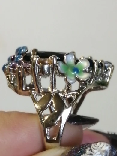 Женское кольцо с розовым опалом и зеленой эмалью, с кристаллами