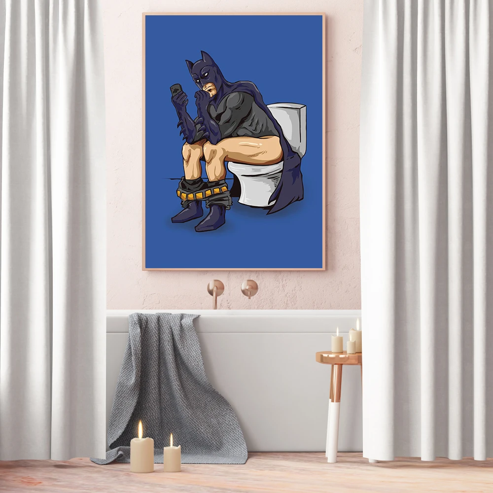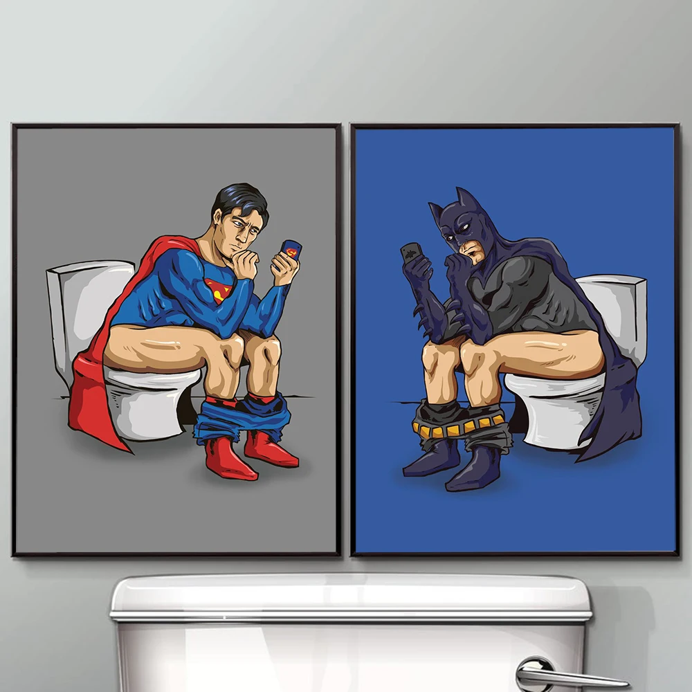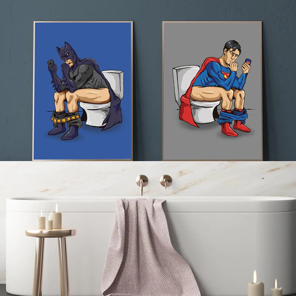Забавная мультяшная фигурка, настенная Картина на холсте в туалете, скандинавские постеры и принты, настенные картины для гостиной, ванной комнаты, домашний декор