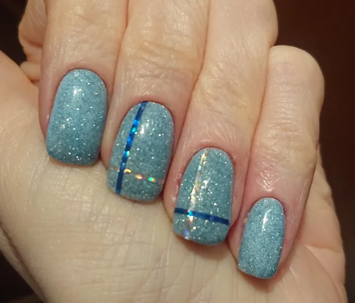 Неплохой лак, красила поверх голубого вышло красиво. Фото делала при разном освещении.