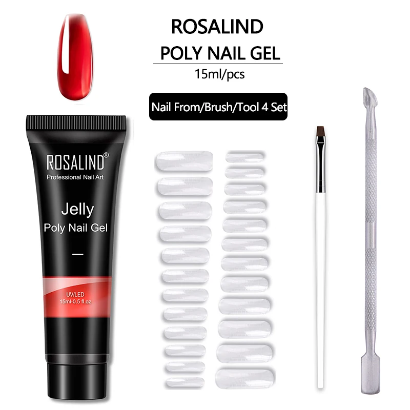 УФ-гель для ногтей ROSALIND Poly набор гелей для ногтей, 15 мл, быстрое наращивание, набор полуперманентных гелей для ногтей, стойкое наращивание