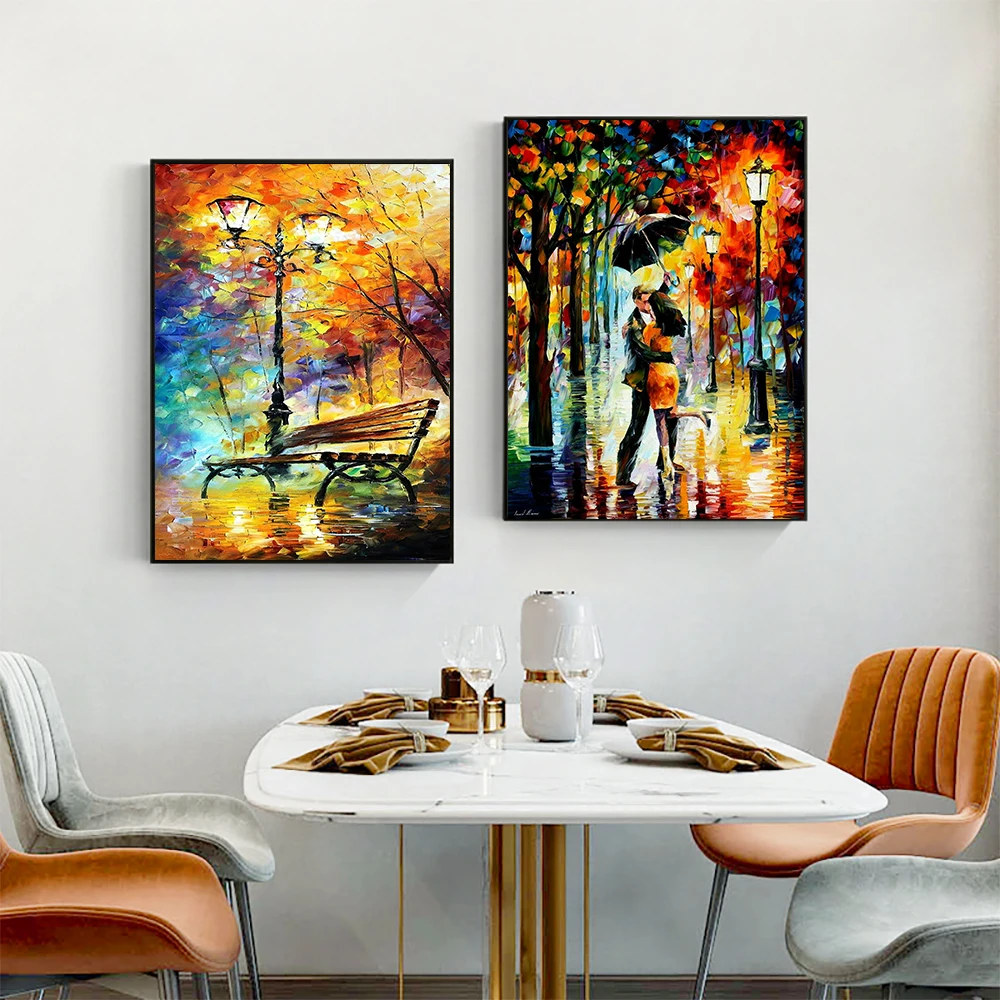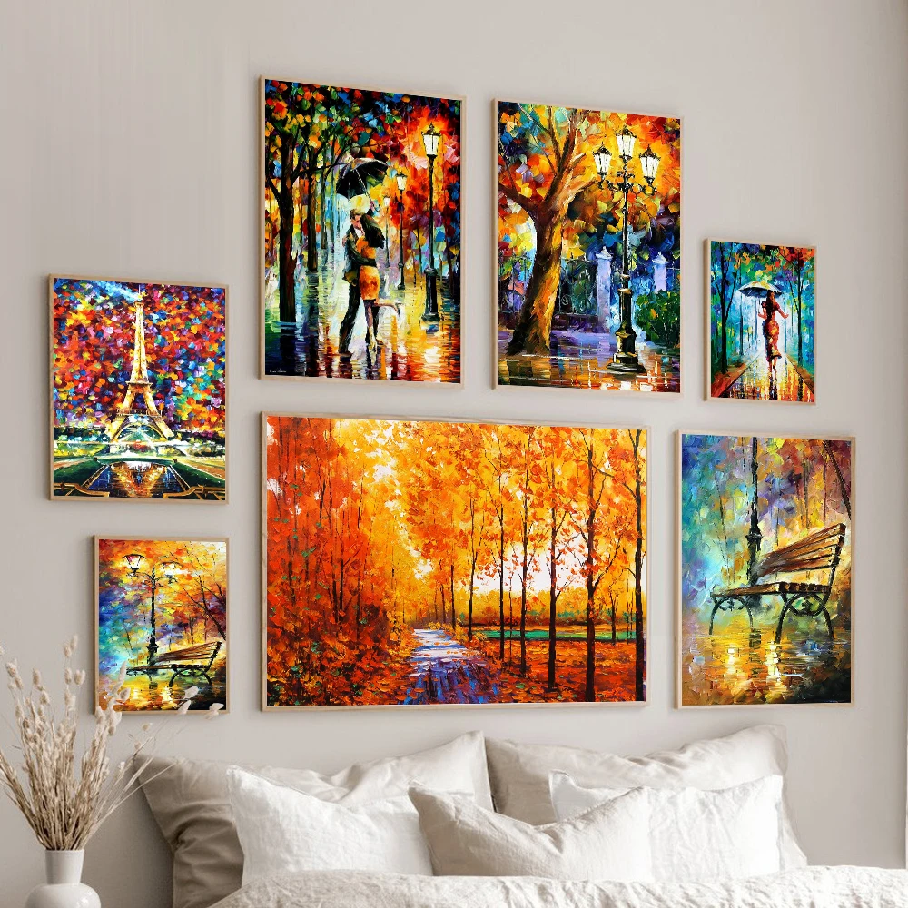 Абстрактный пейзаж, нож, картины маслом на холсте, плакаты и принты, цветная башня, пара, настенные художественные картины для декора гостиной